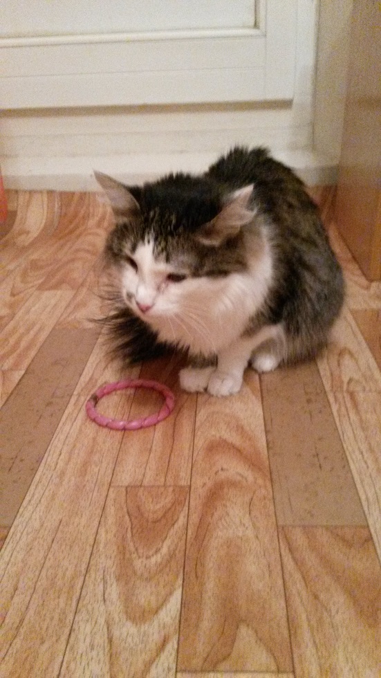 Васю подобрала дочка. И него тоже был больной глаз, но его удалось спасти.