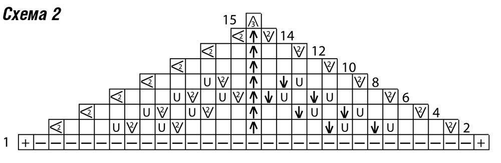 Вязать согл. схеме 2. На ней даны лицевые ряды, а также первый и последний изнаночные ряды.