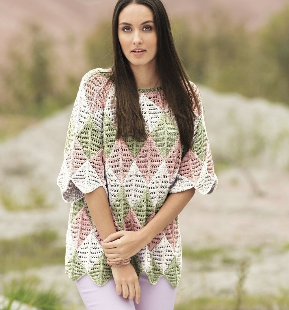 Трехцветный джемпер с узором из ромбов. Описание
