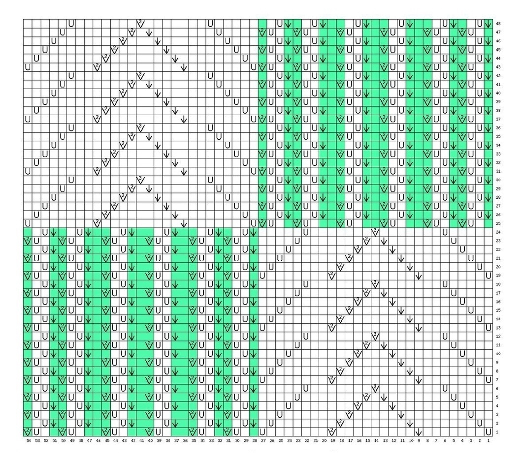 Схема составлена и для лицевых рядов, и для изнаночных. Узор вяжется в каждом ряду.