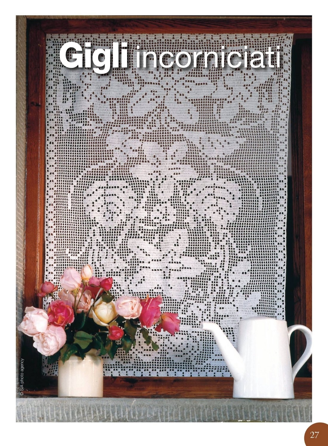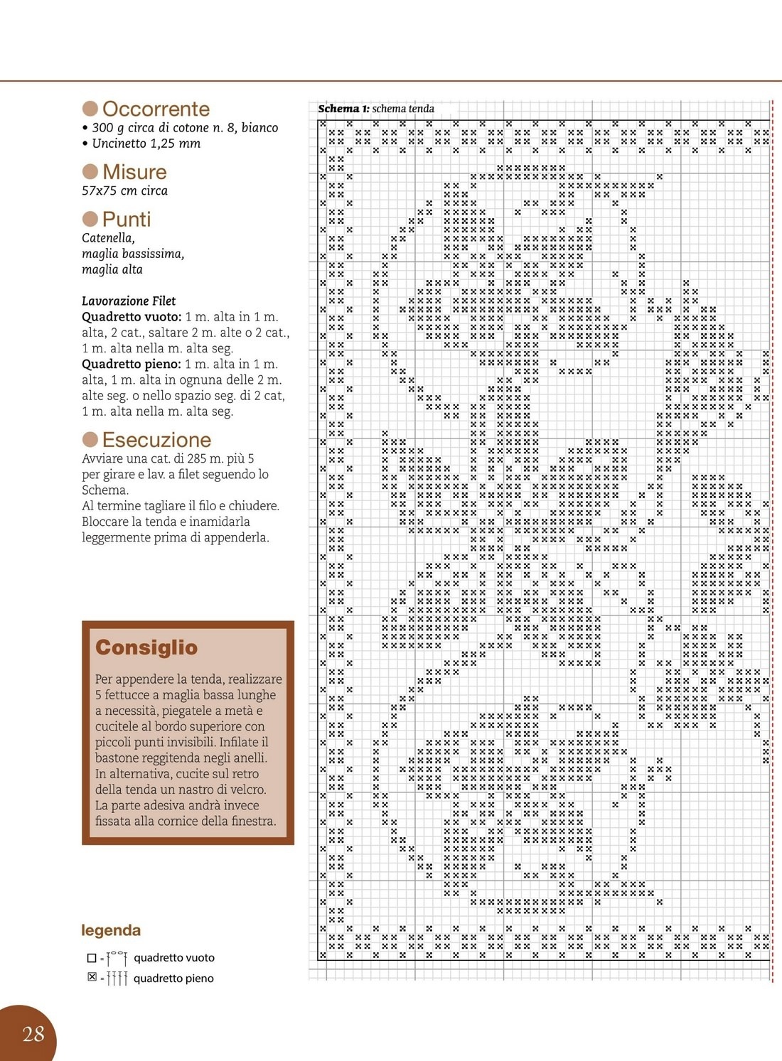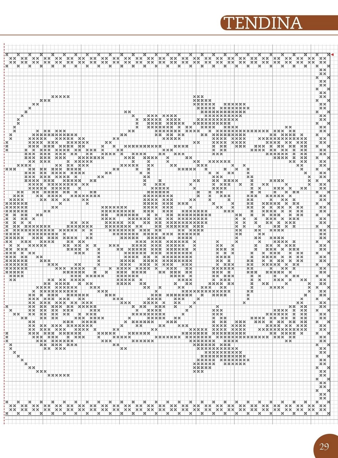 Схема. Занавеска с цветами в филейной технике