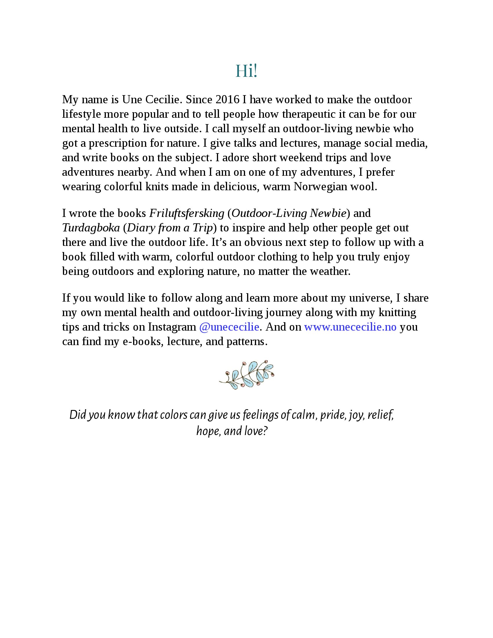 Украсьте свой гардероб и свою жизнь яркими узорами в скандинавском стиле и вдохновляющими историями от Une Cecilie Oksvold. Эта потрясающая коллекция из 23 оригинальных моделей включает в себя яркие свитера, аксессуары и проекты с нулевым уровнем затрат, разработанные для того, чтобы вам было тепло и стильно на любом открытом воздухе.