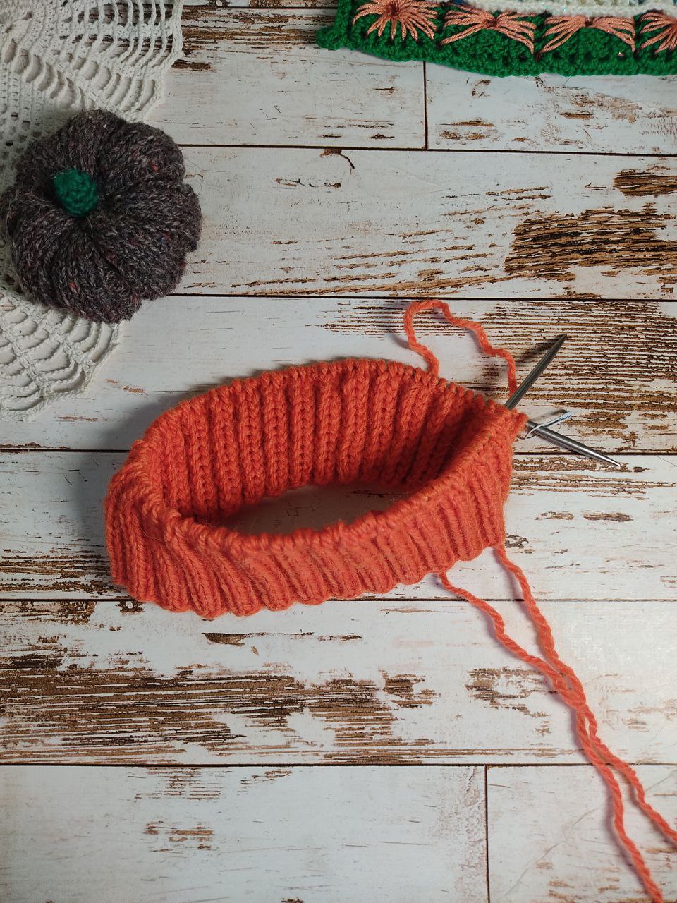 На спицы набрала 113 петель обычным способом набора. Соединила вязание в круг. Резинку вязала 2х2 (2 петли изнаночные, 2 петли лицевые). Первый ряд начала с 2 изнаночных, чтобы край шапки стал лицевым (без «узелков»). Далее без изменений ещё 11 рядов резинкой 2х2.