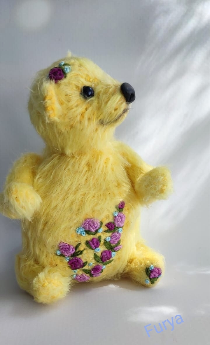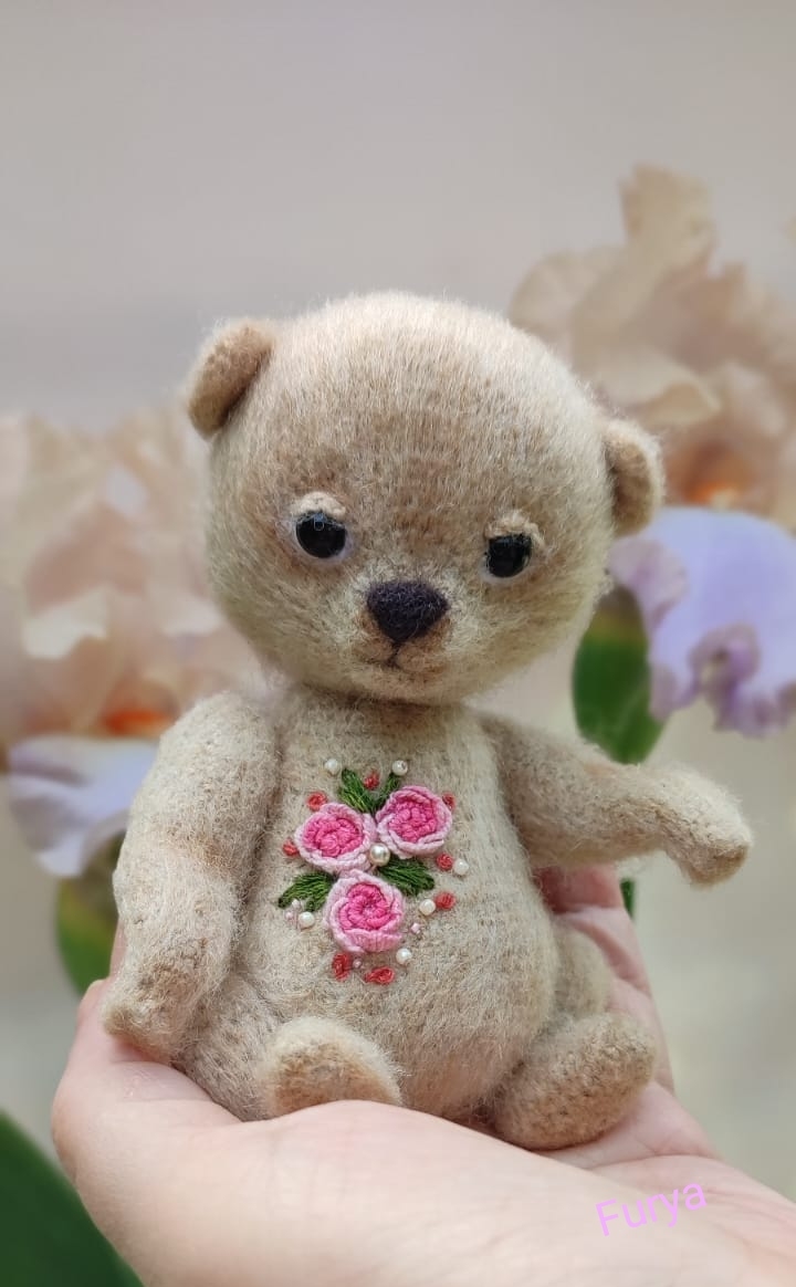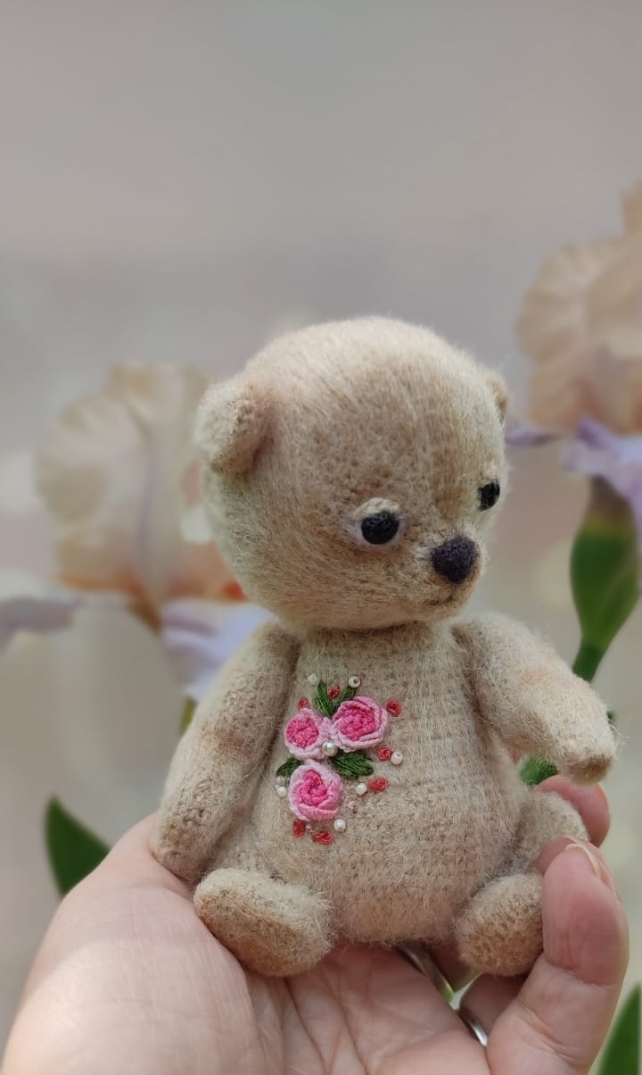 как-то попались на глаза Амигуруми с вышивкой. Попробовала. Смотрится очень классно. Цветочные медведи. Специально покупала меланжевое мулине, чтобы в цветах создать переходы.