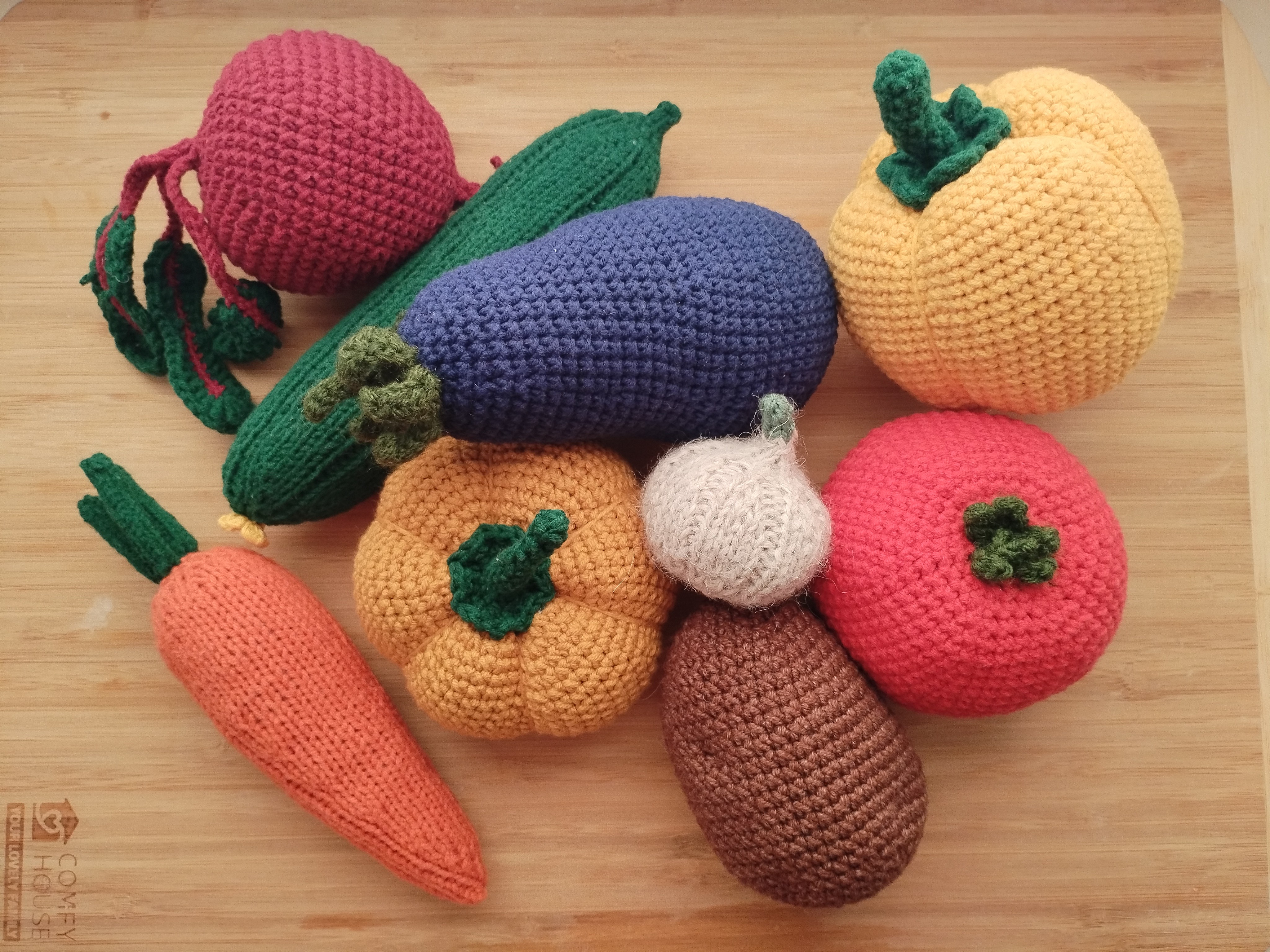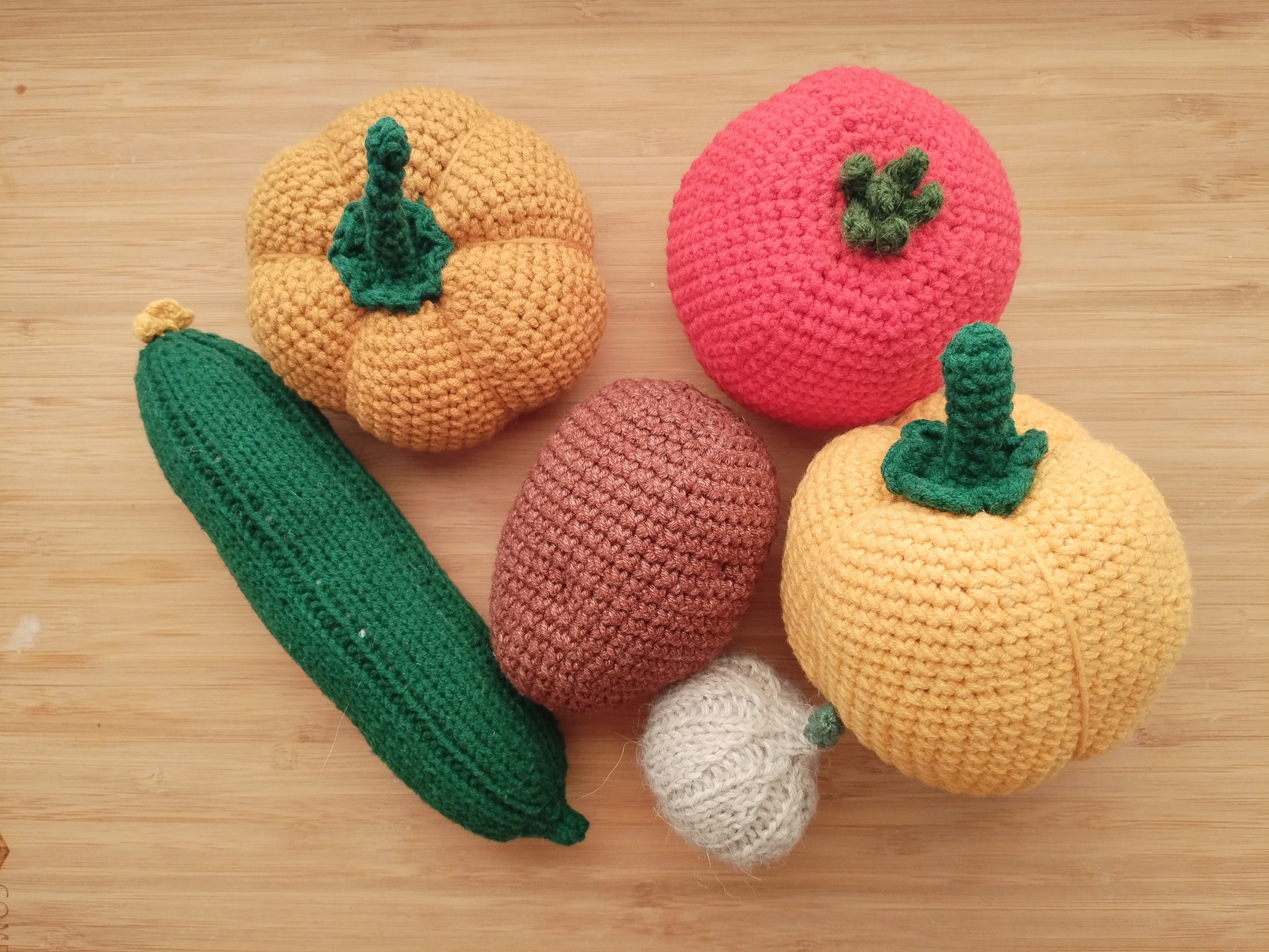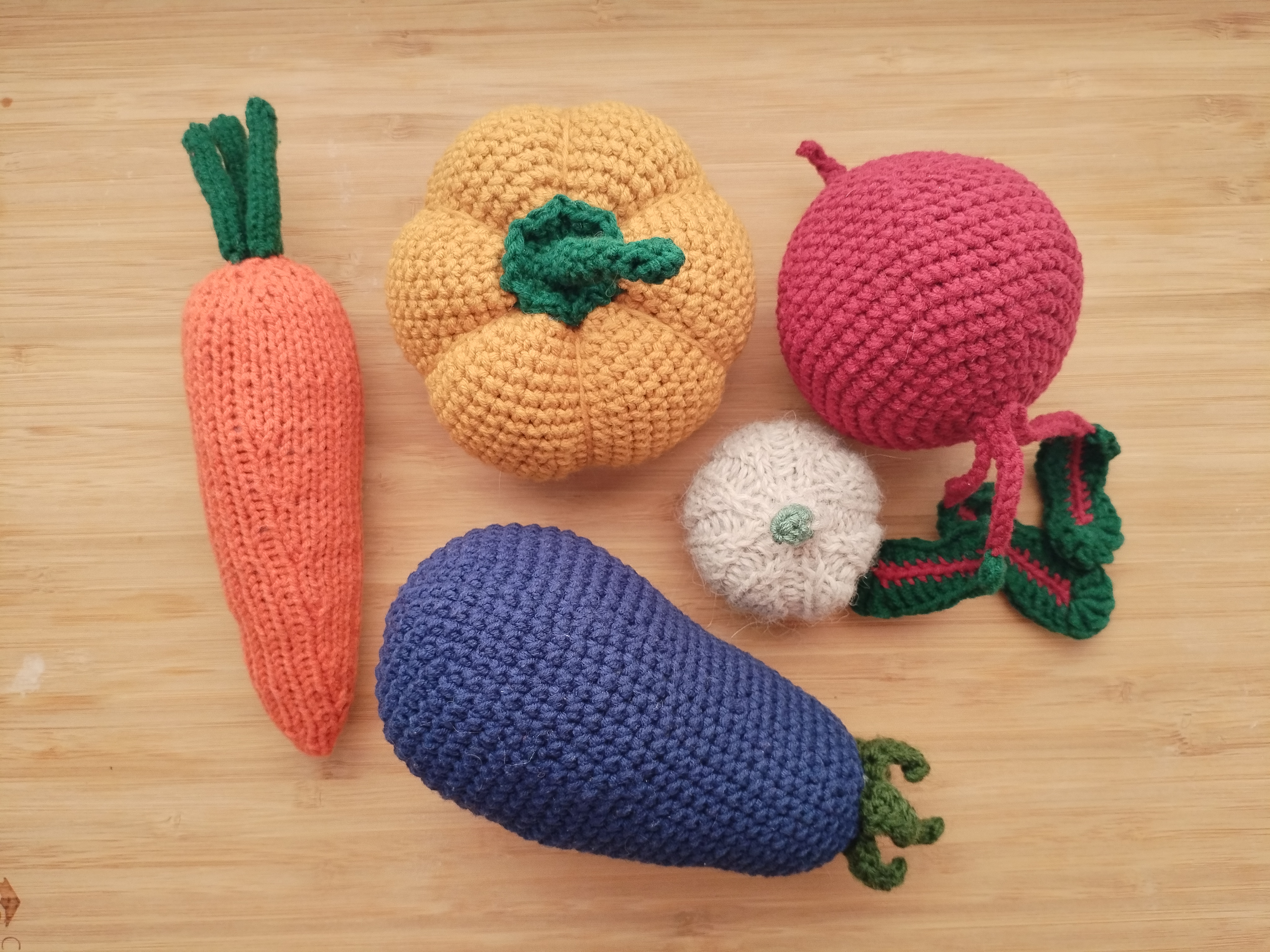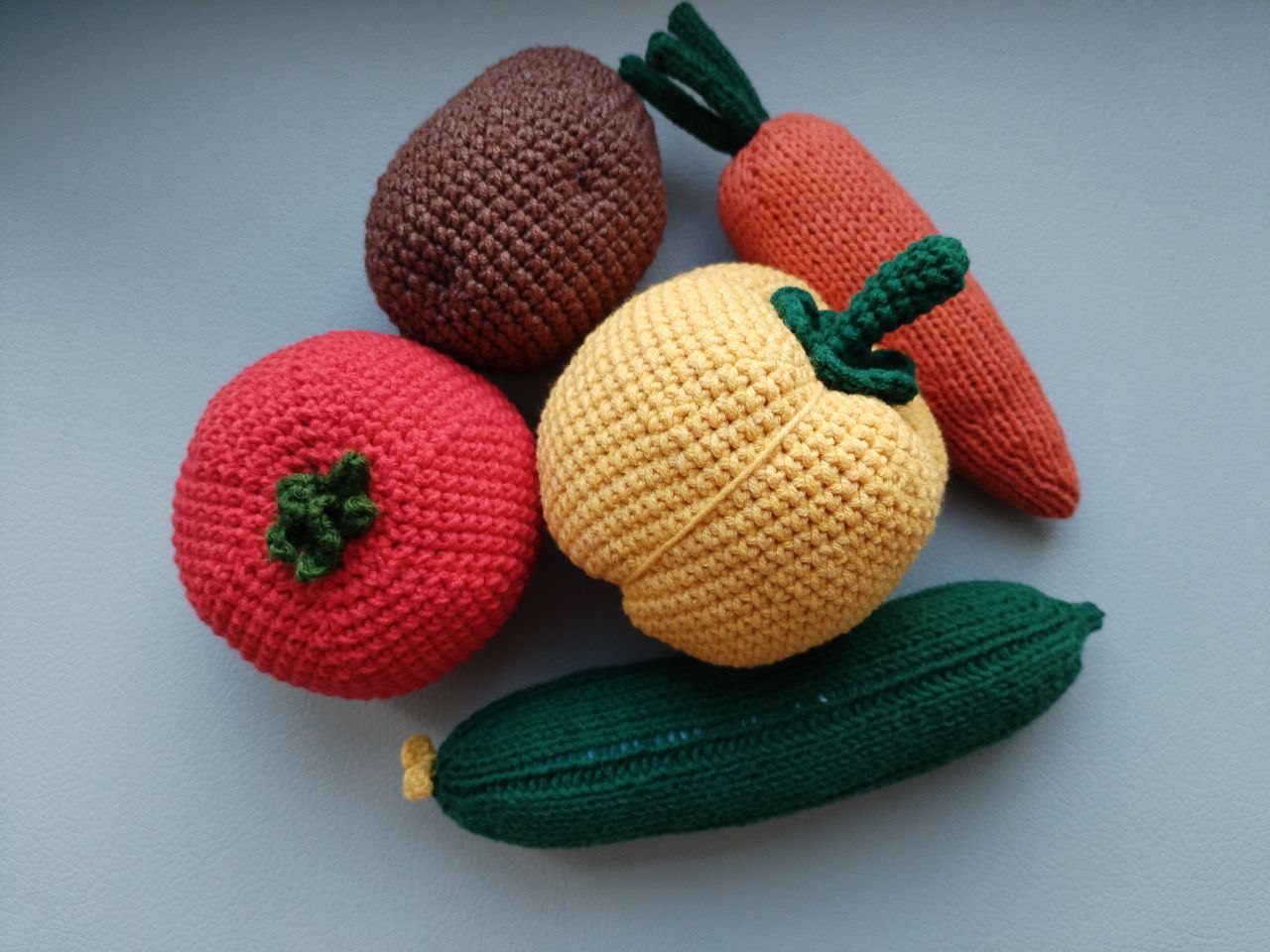 Заказали набор овощей в детсад. А я как раз набрала ЯрнАрт Джинс разных цветов и работа закипела