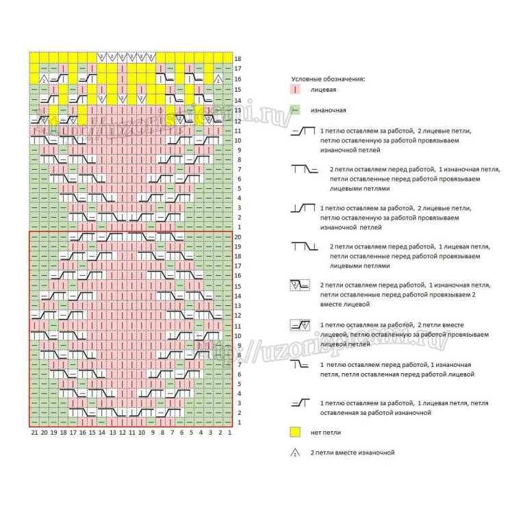 Важно, чтобы количество петель было кратно 4 (для резинки 2 на 2) и 21 (количество петель в раппорте)