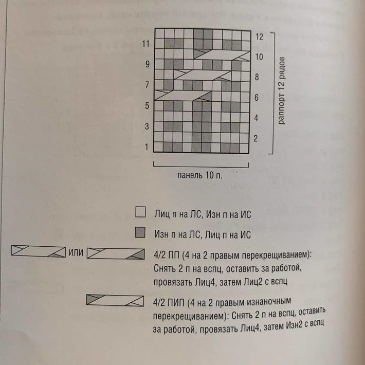 10 р.В перекрещивании, те что за работой-2 вместе изнаночными, а те, что перед Раб.-2 вместе лиц, в полоске, где платочная, 2 вместе.