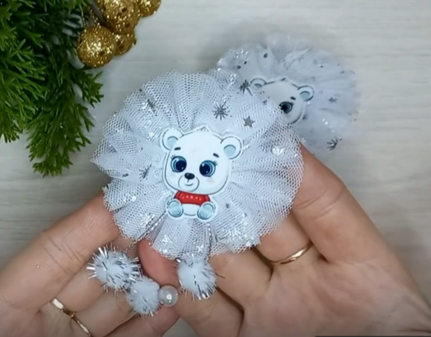 Зимние бантики из фатина с подвеской в технике канзаши. Видео МК
