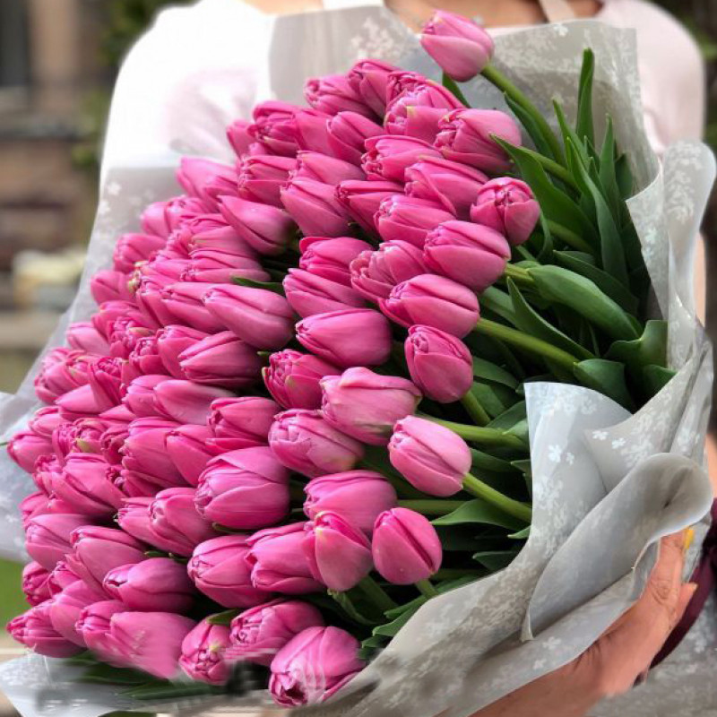 Она прижала цветы к груди и на щеках у нее зарозовели еще два прелестных тюльпана, в тон подаренным.