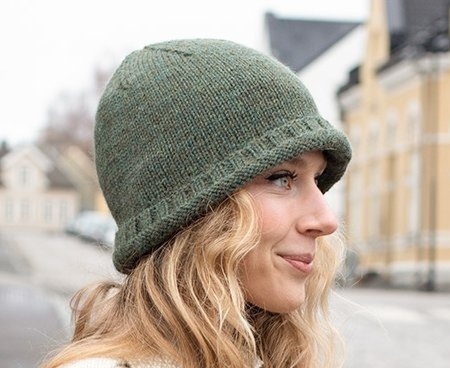 Шляпка выглядит почти также, как шапка, даже нижняя планка связана резинкой 2 х 2. Только планка шапки у лица сужается, плотно облегая его, а у шляпки, наоборот, расширяется, образуя валик и небольшие поля.
