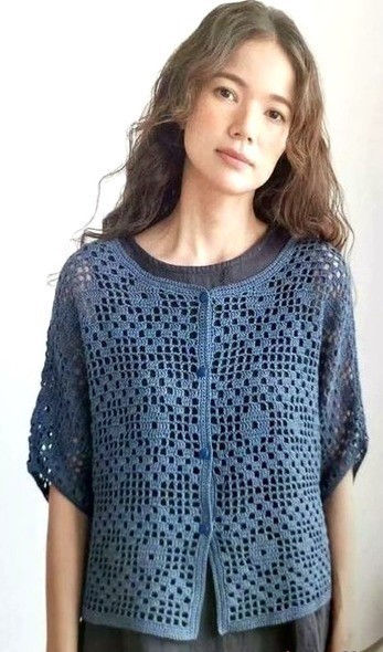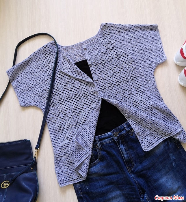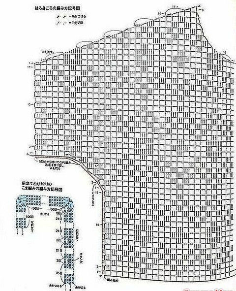 Оригинал связан снизу из трех деталей (спинка и две полочки). Можно вязать целиком, единым полотном.
