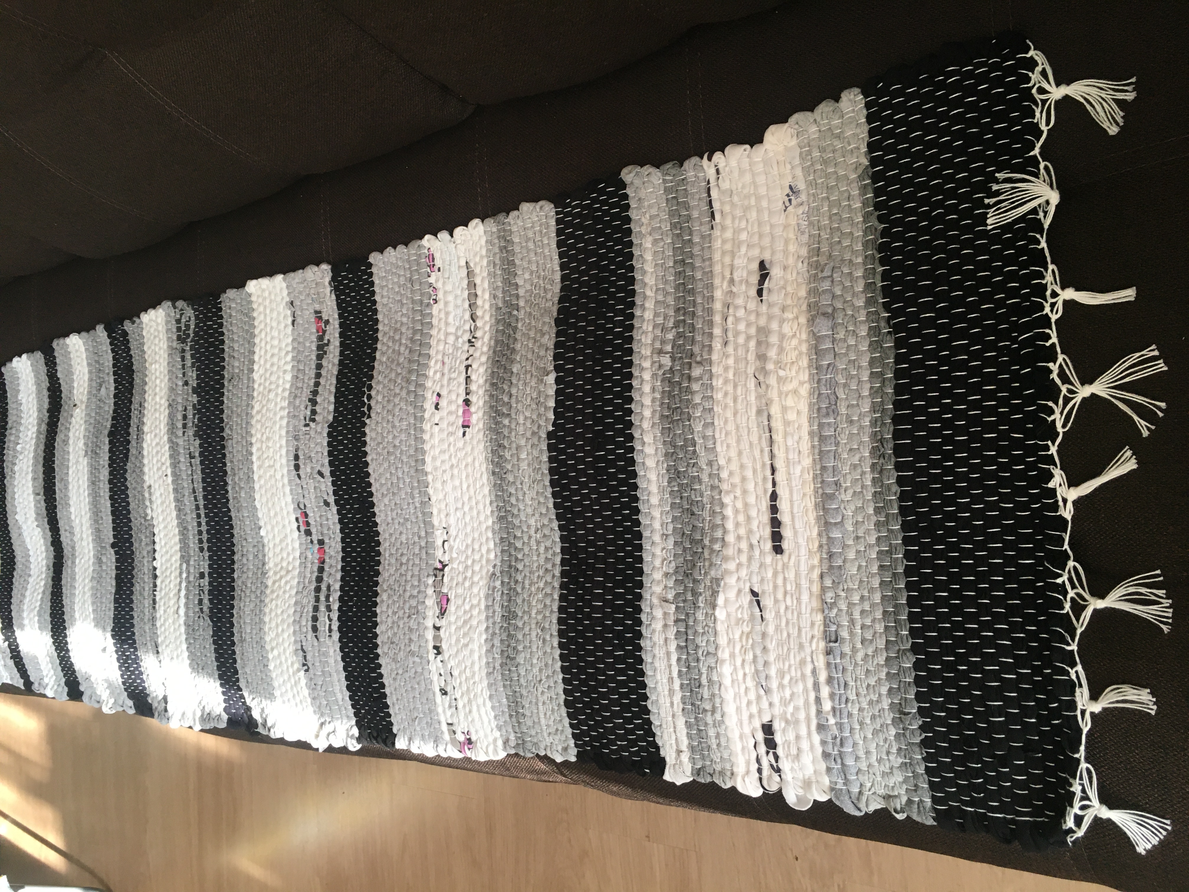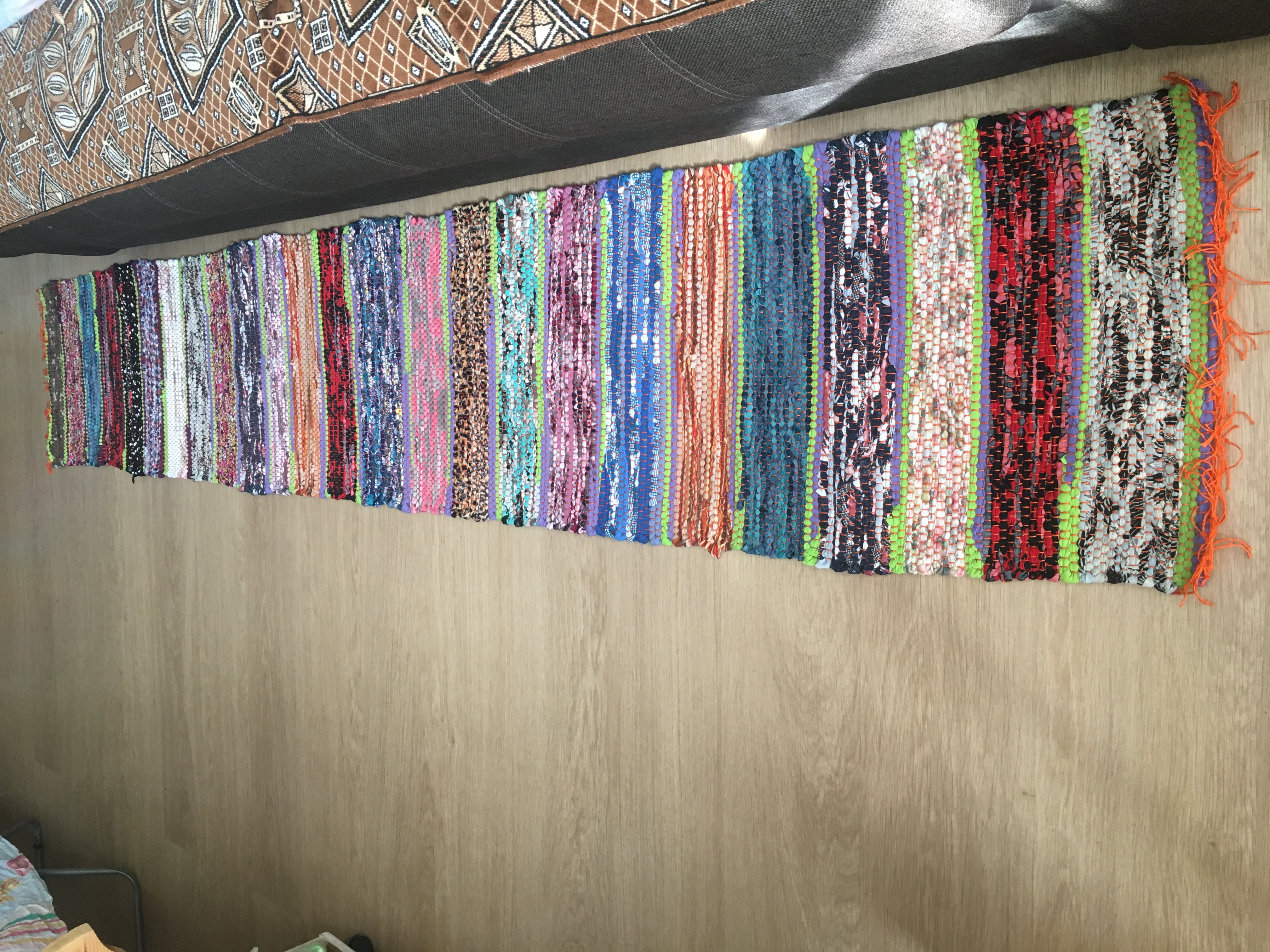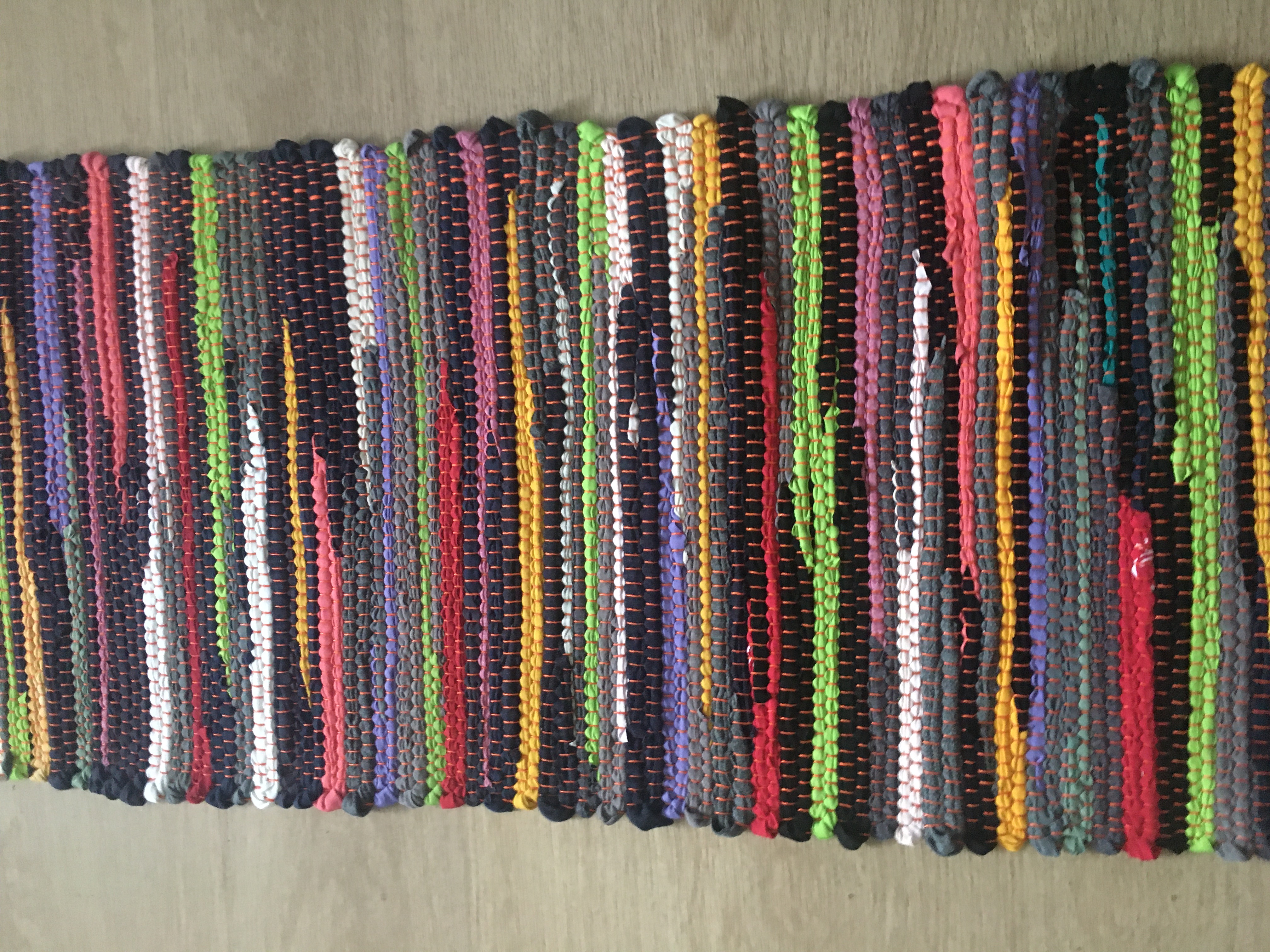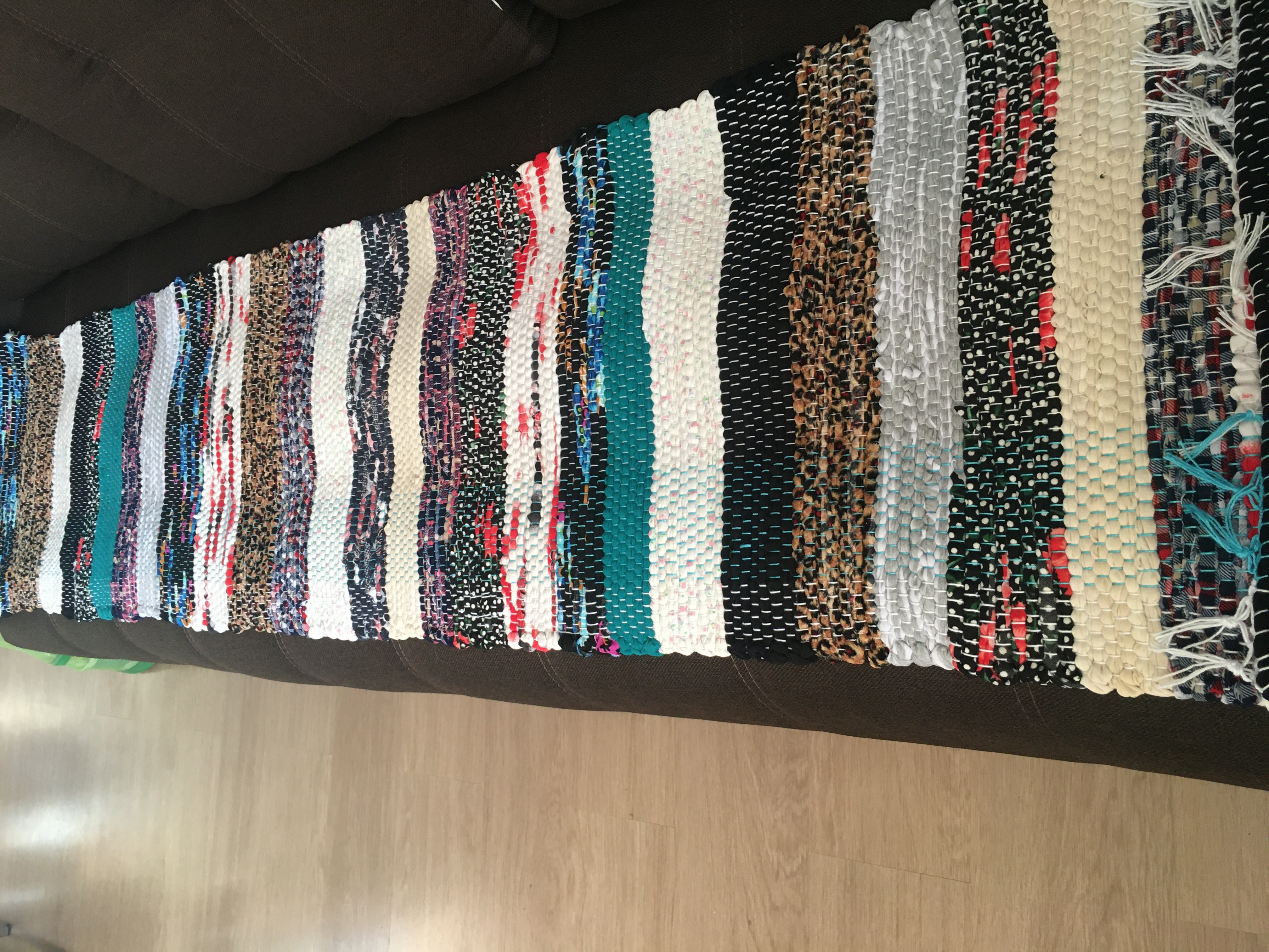 Все половички сотканы из б/у трикотажа. Длиной от 1.7 м до 2.30 м, шириной 0.5 м. Очень удачно смотрятся и используются на дачах на полу и на лавочках.