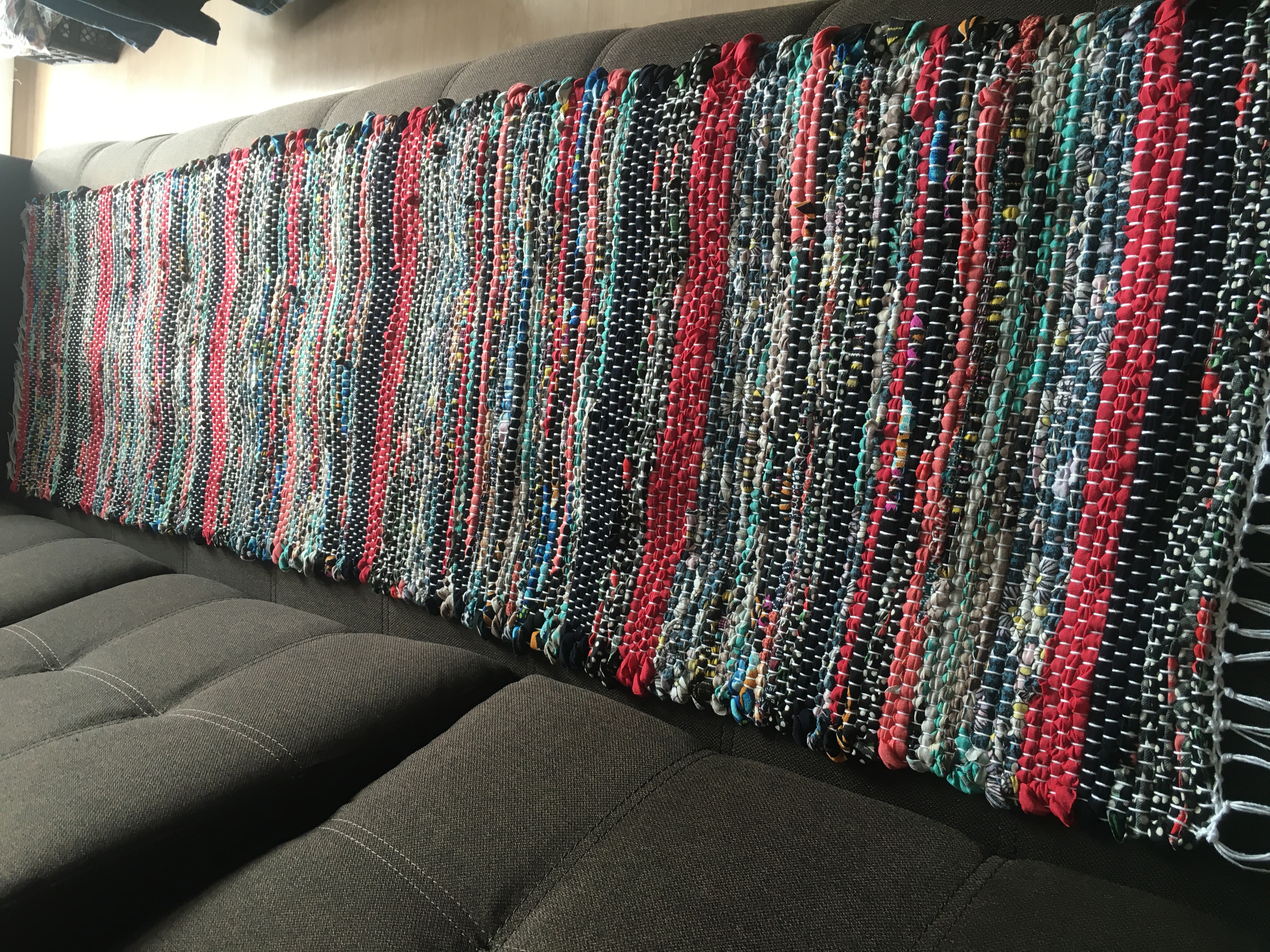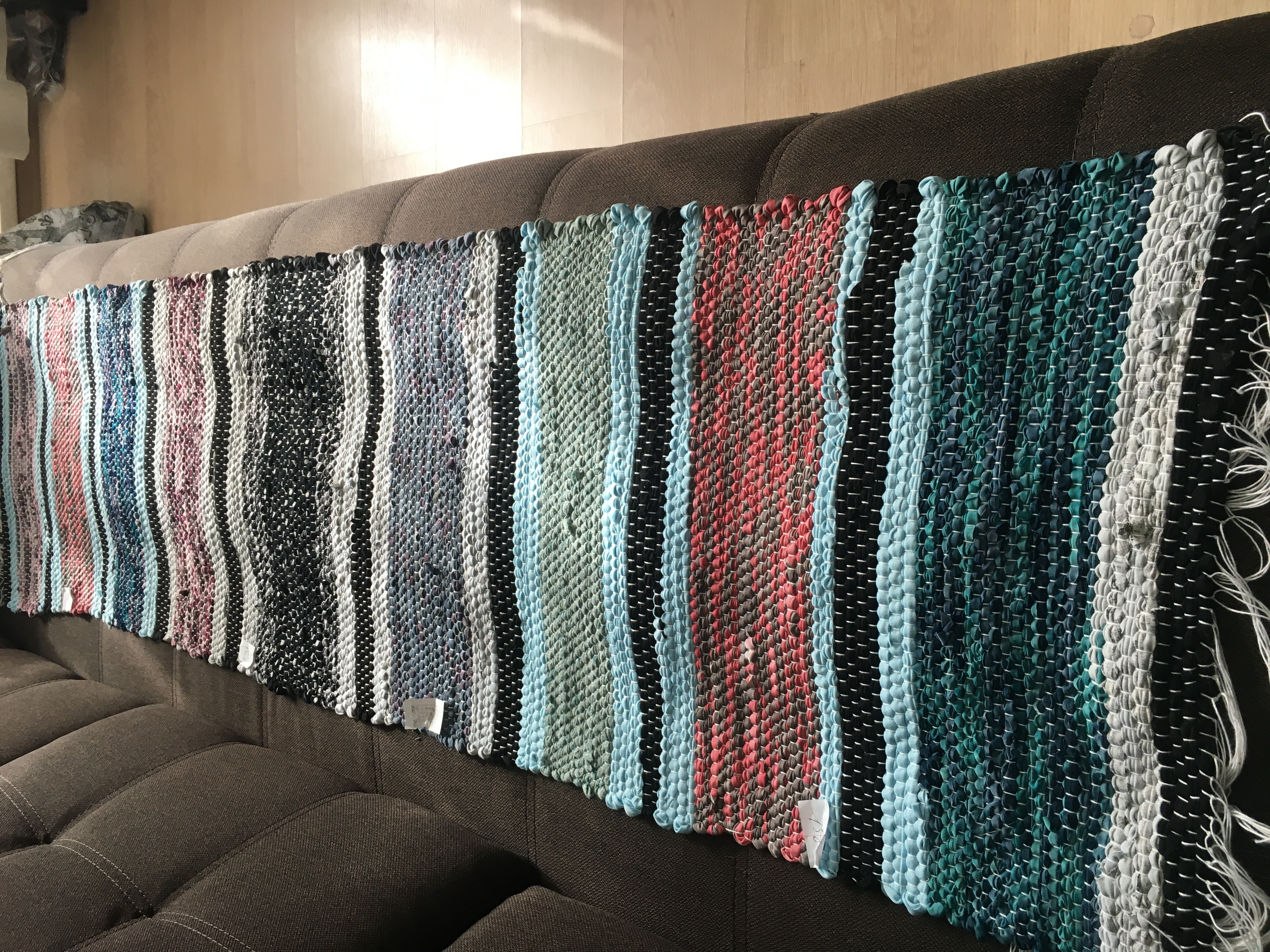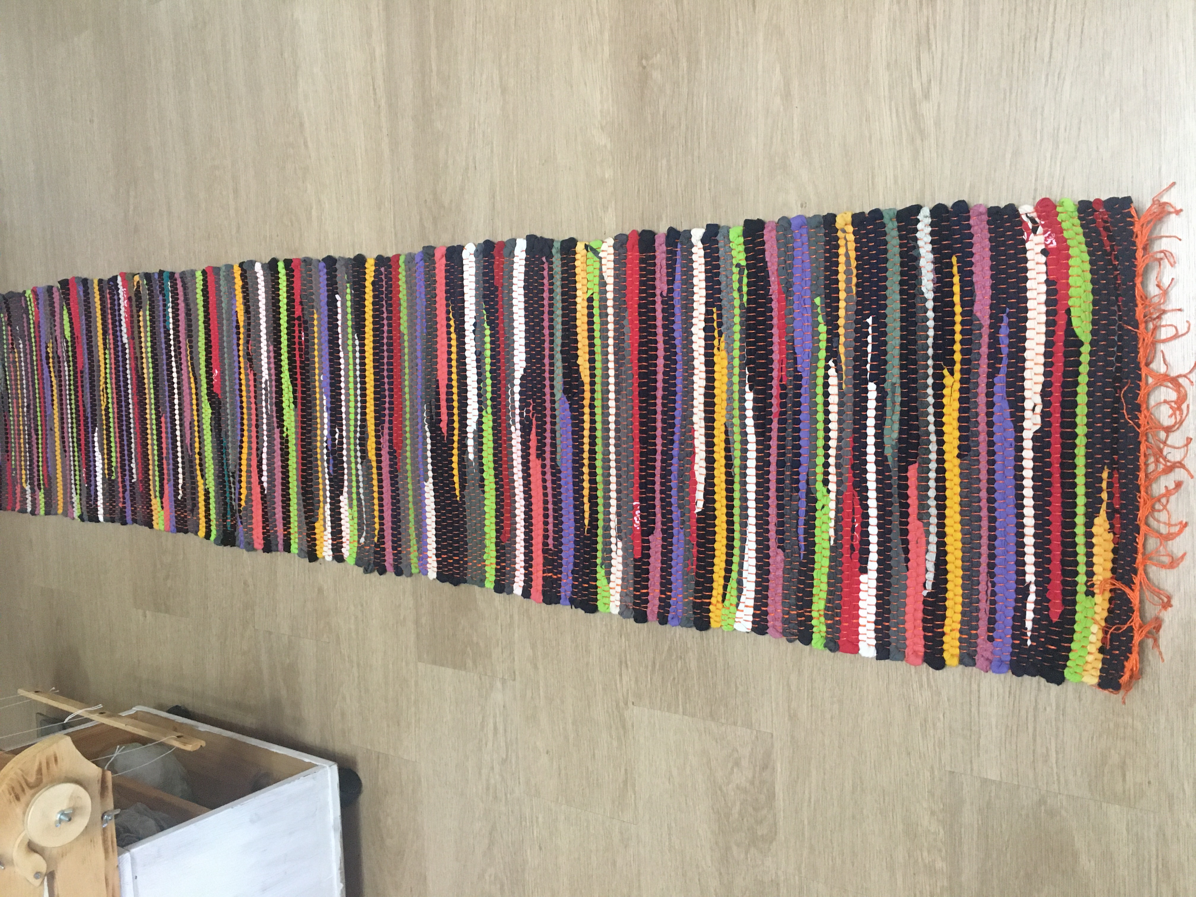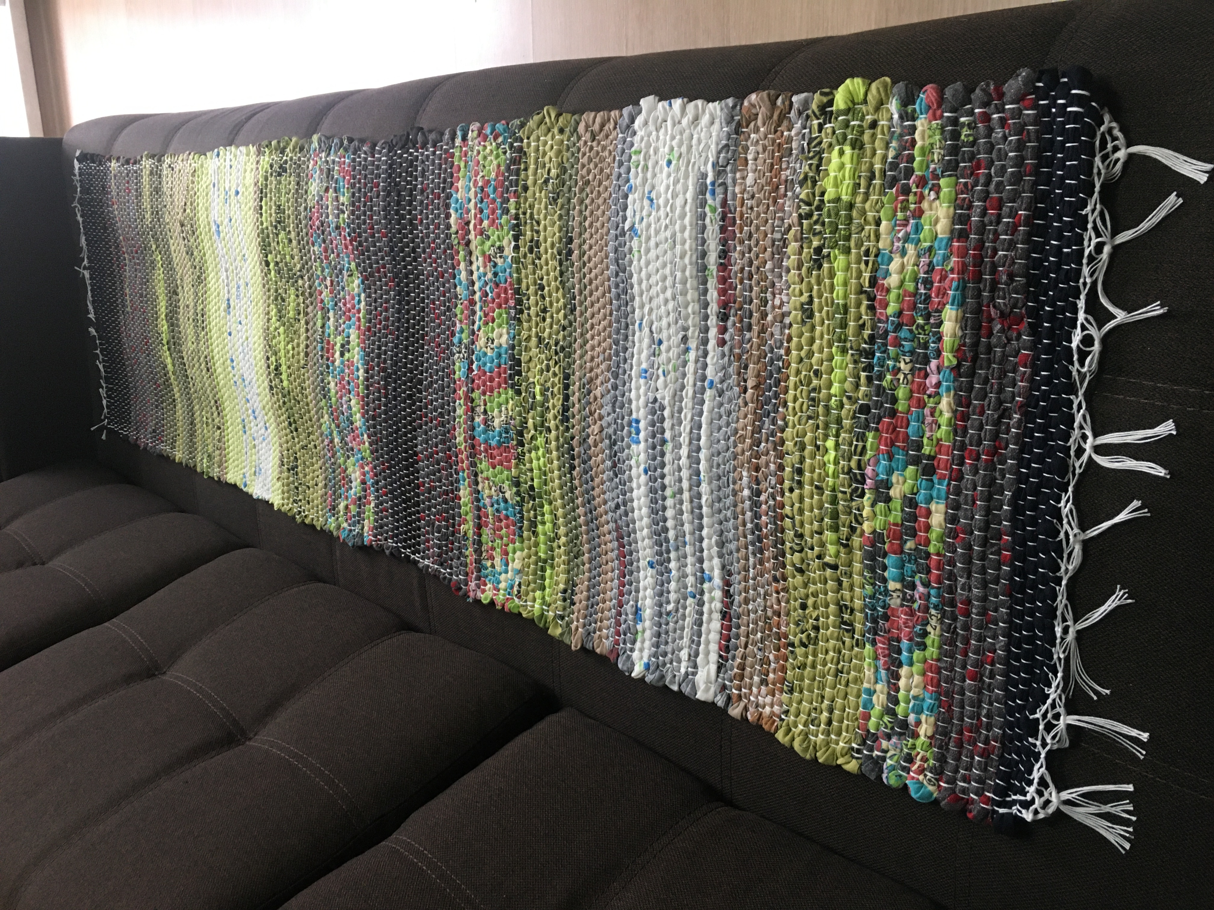 Все половички сотканы из б/у трикотажа. Длиной от 1.7 м до 2.30 м, шириной 0.5 м. Очень удачно смотрятся и используются на дачах на полу и на лавочках.