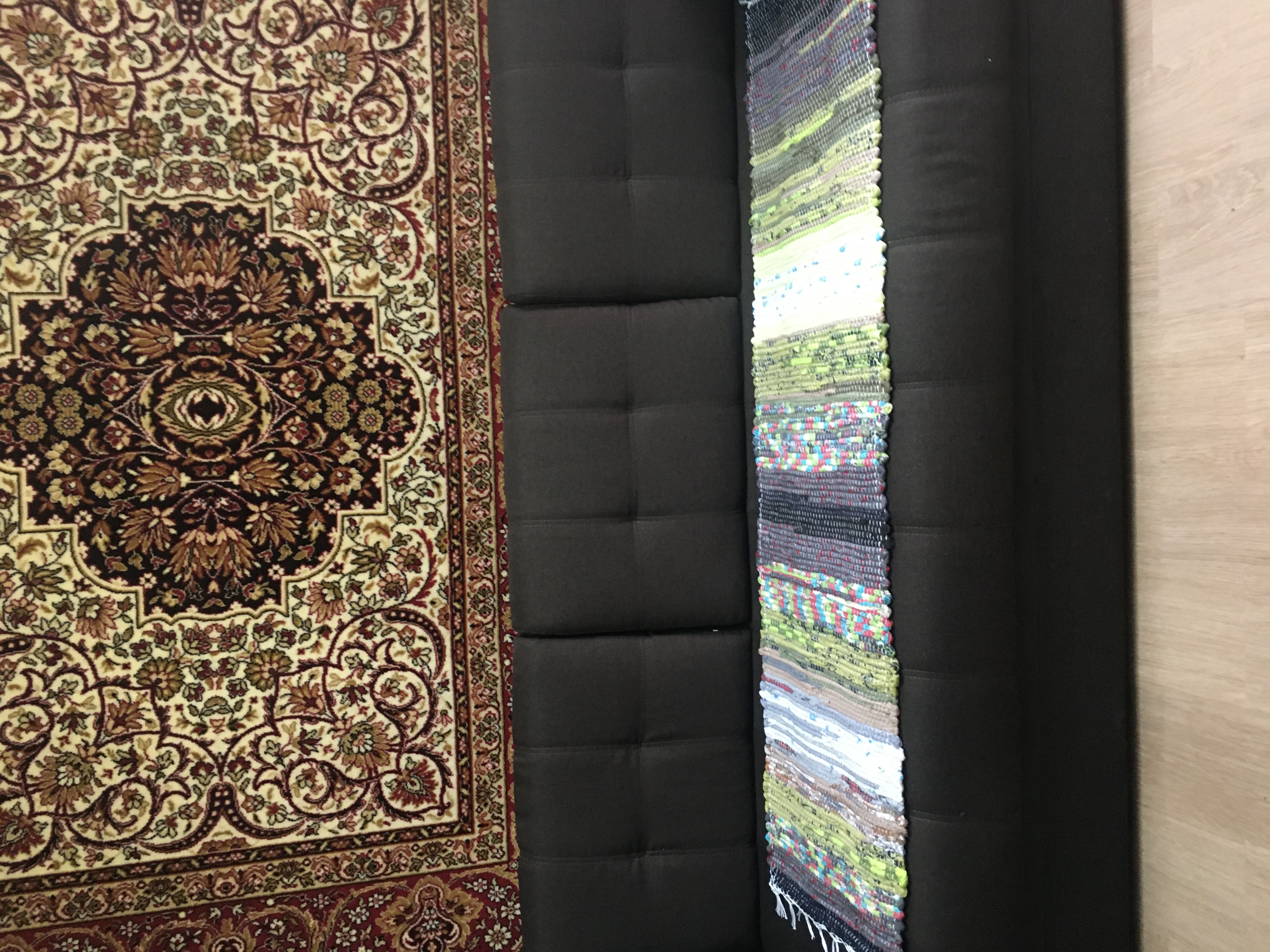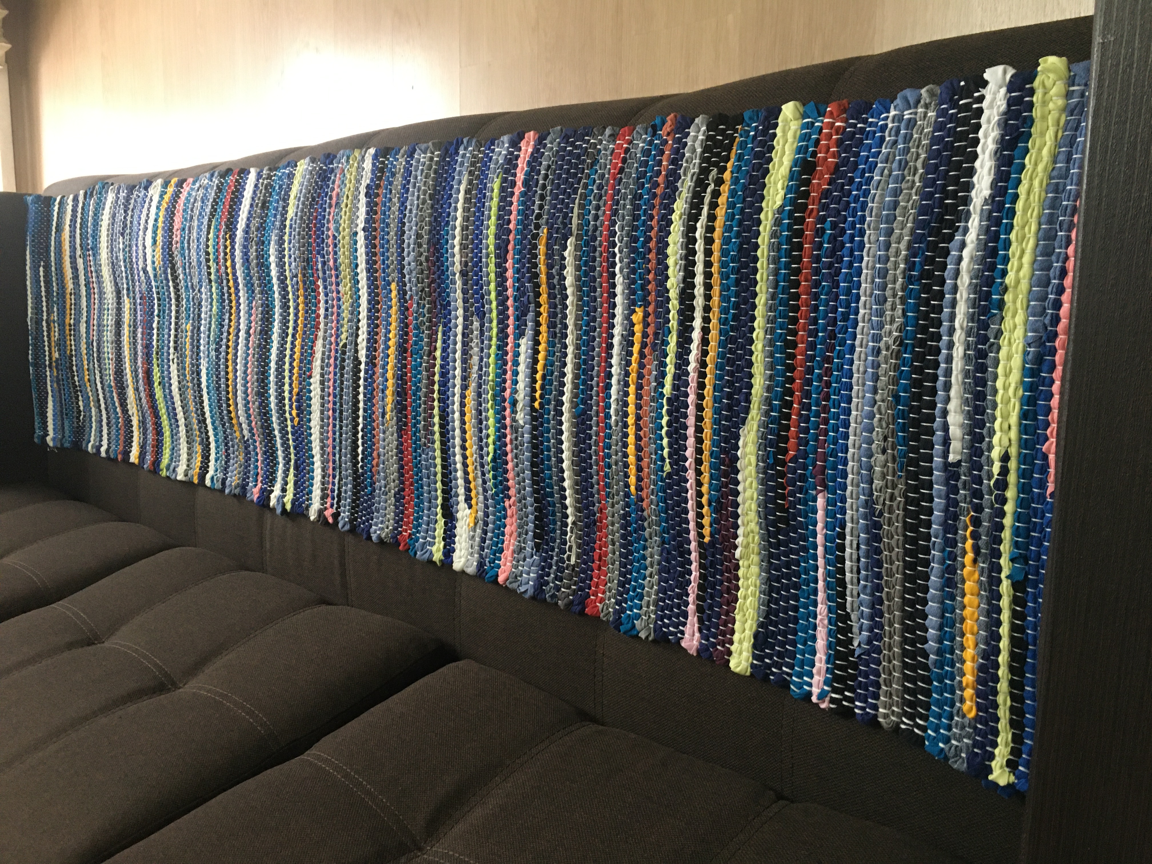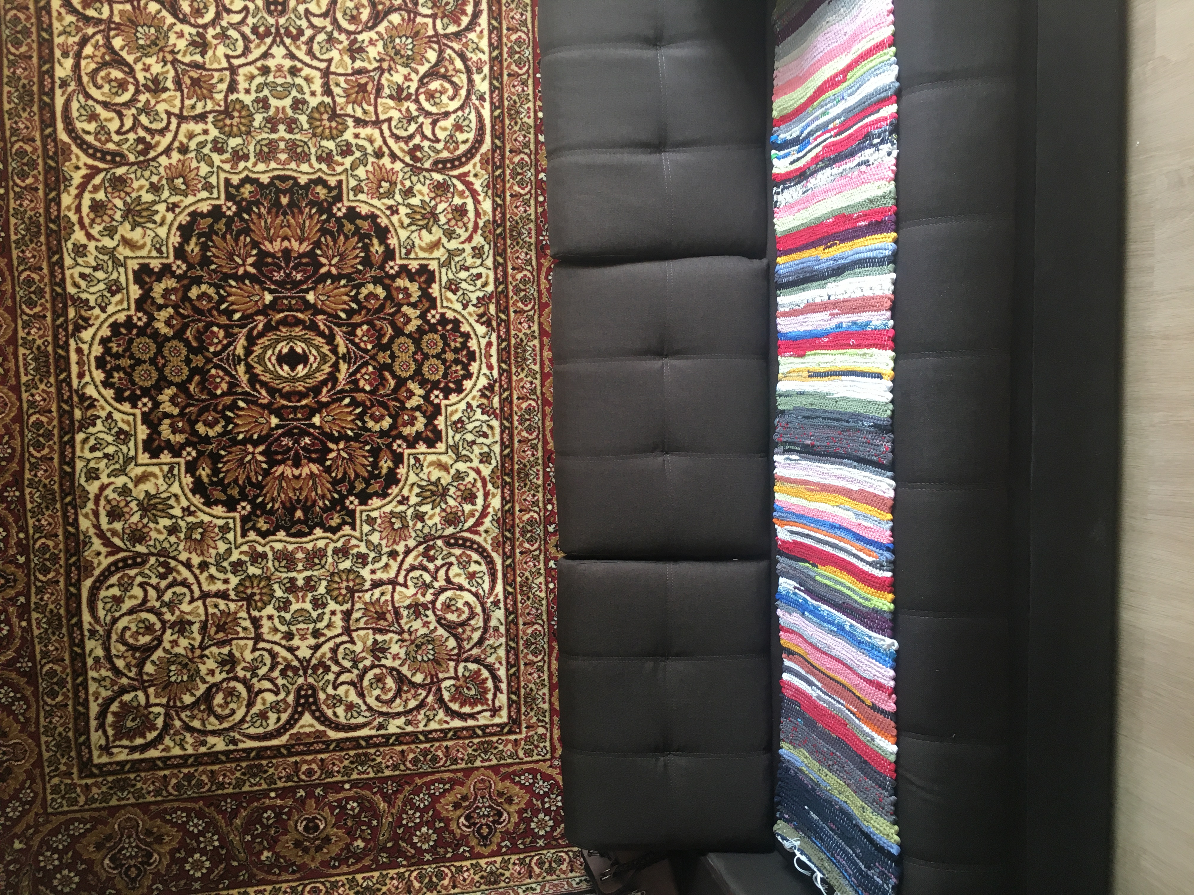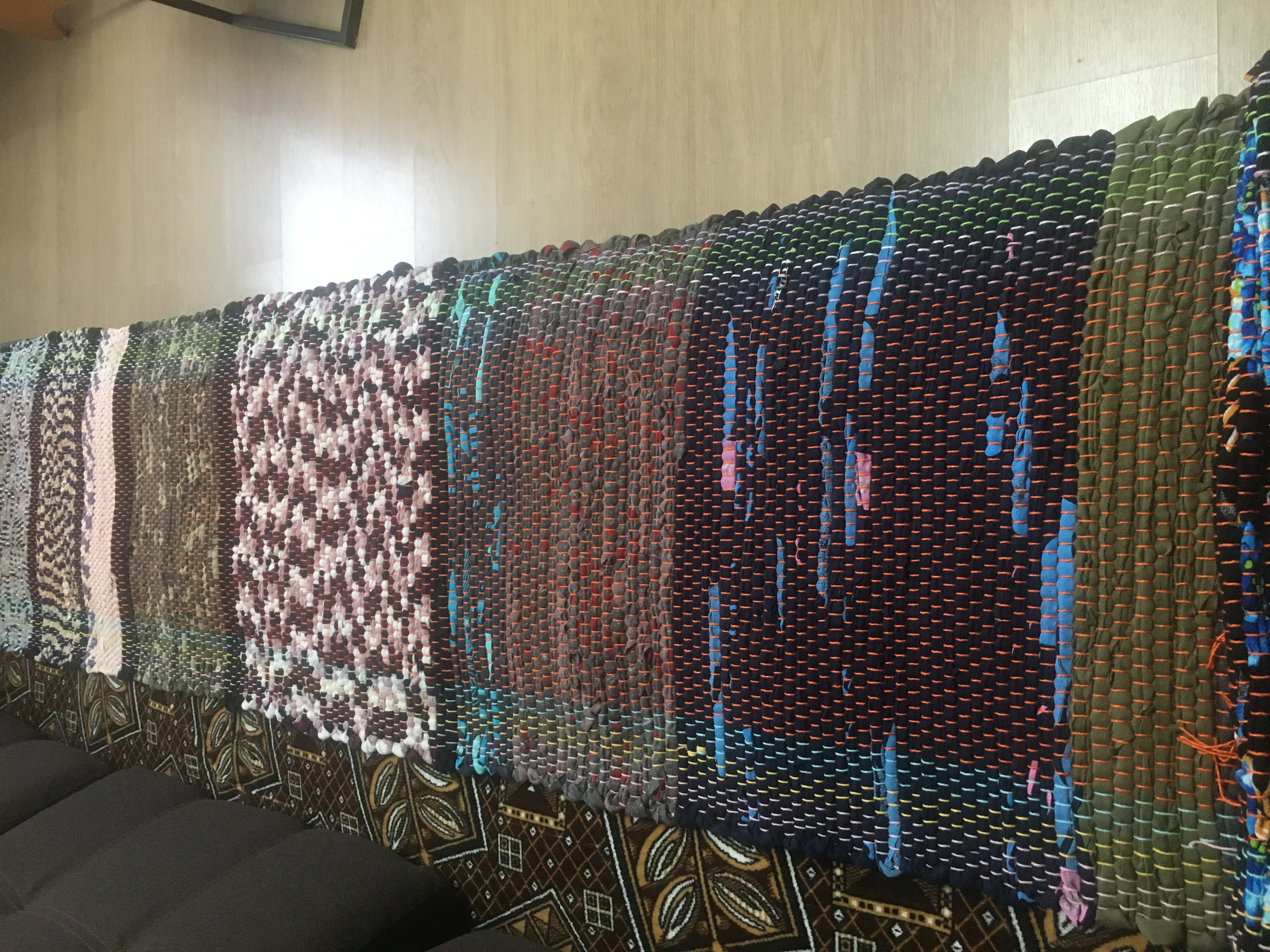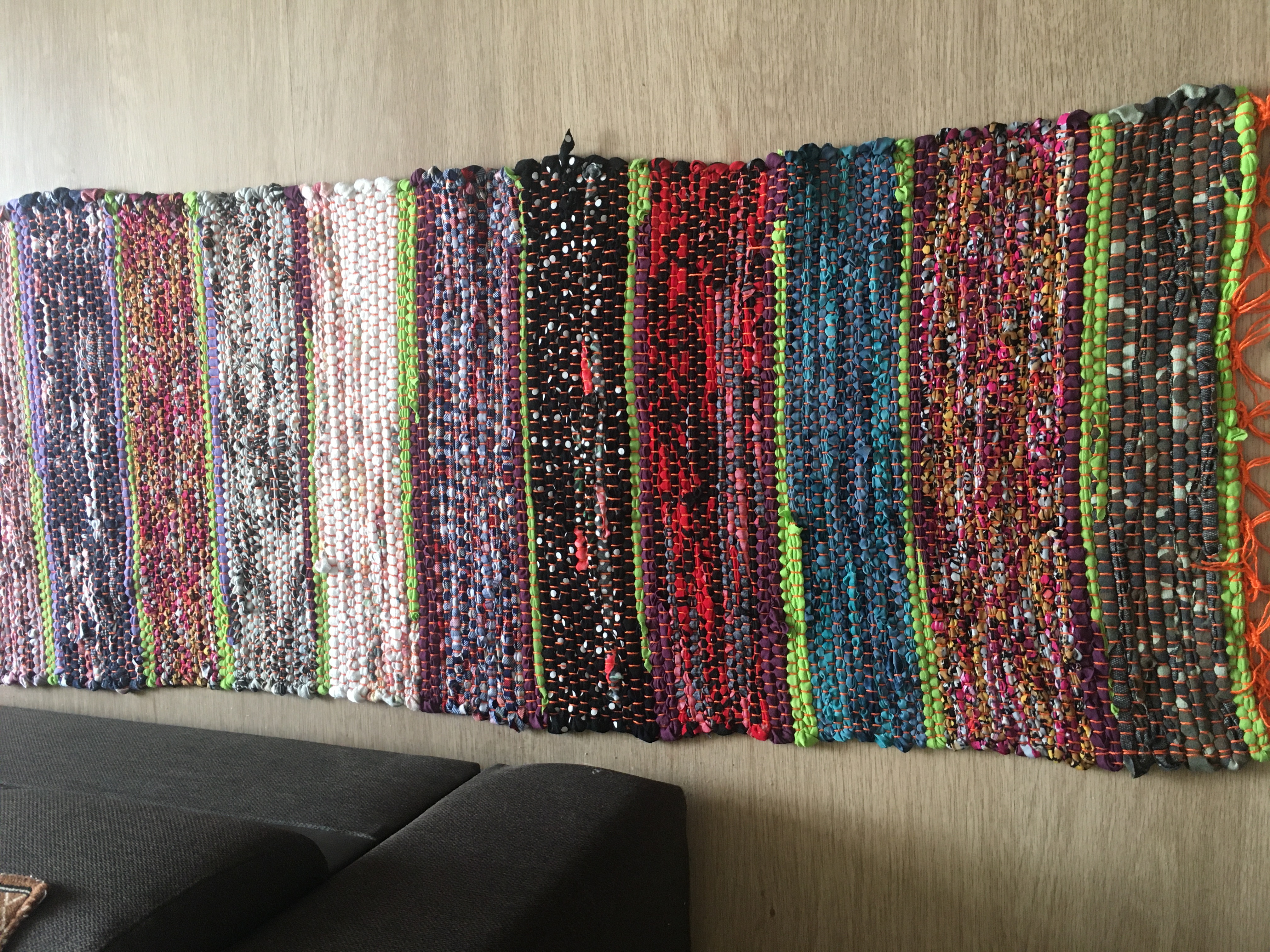 Все половички сотканы из б/у трикотажа. Длиной от 1.7 м до 2.30 м, шириной 0.5 м. Очень удачно смотрятся и используются на дачах на полу и на лавочках.