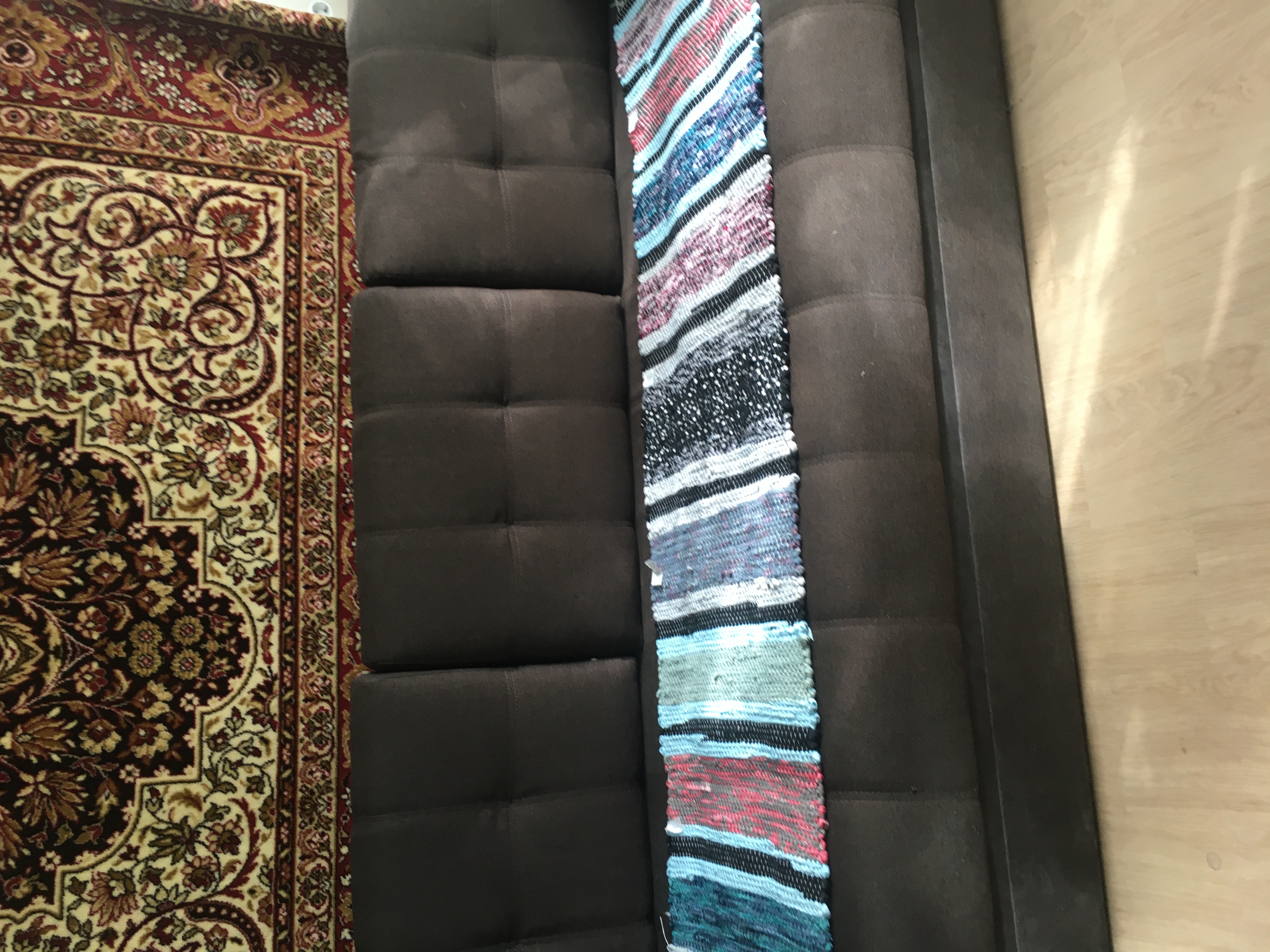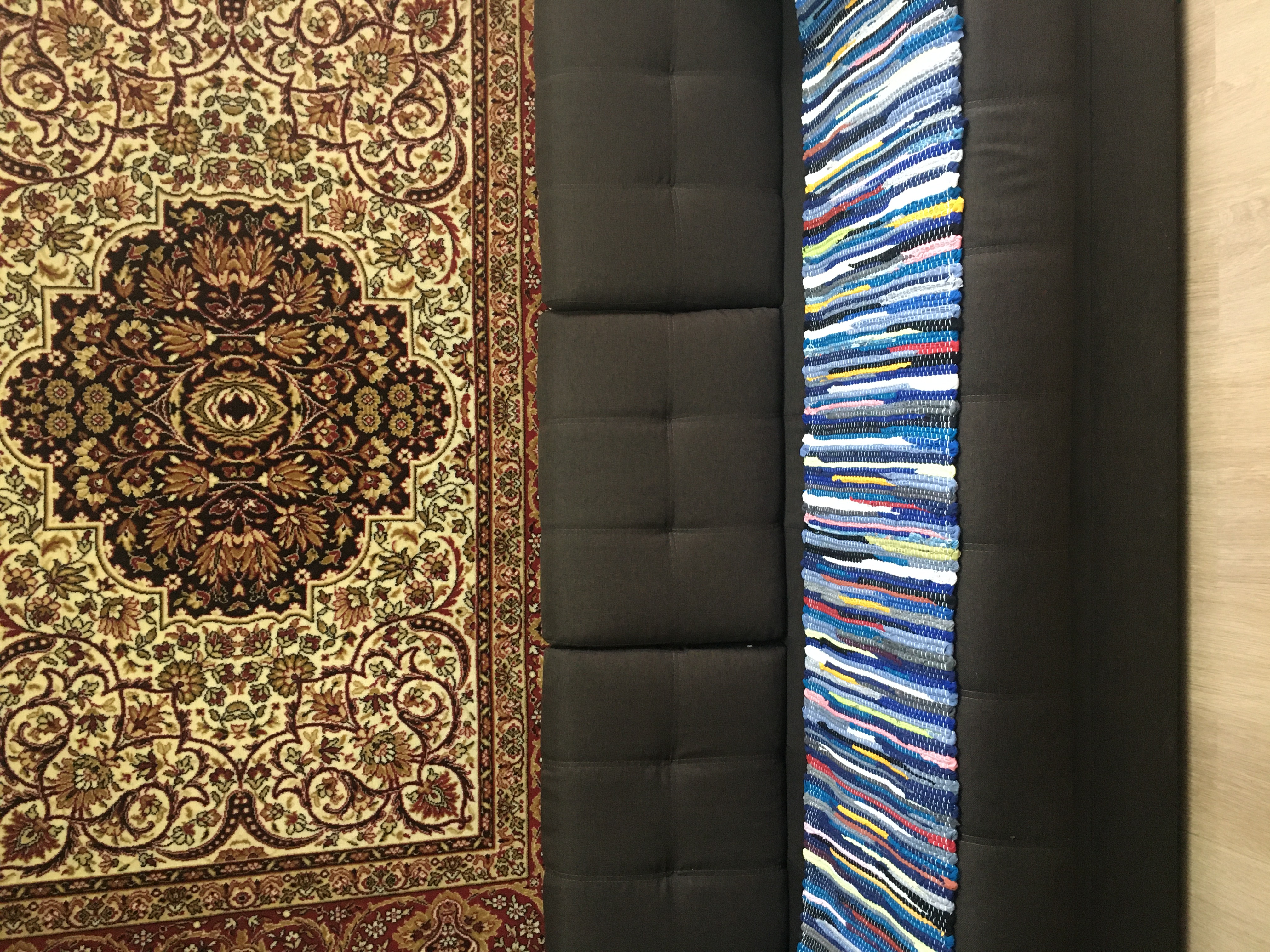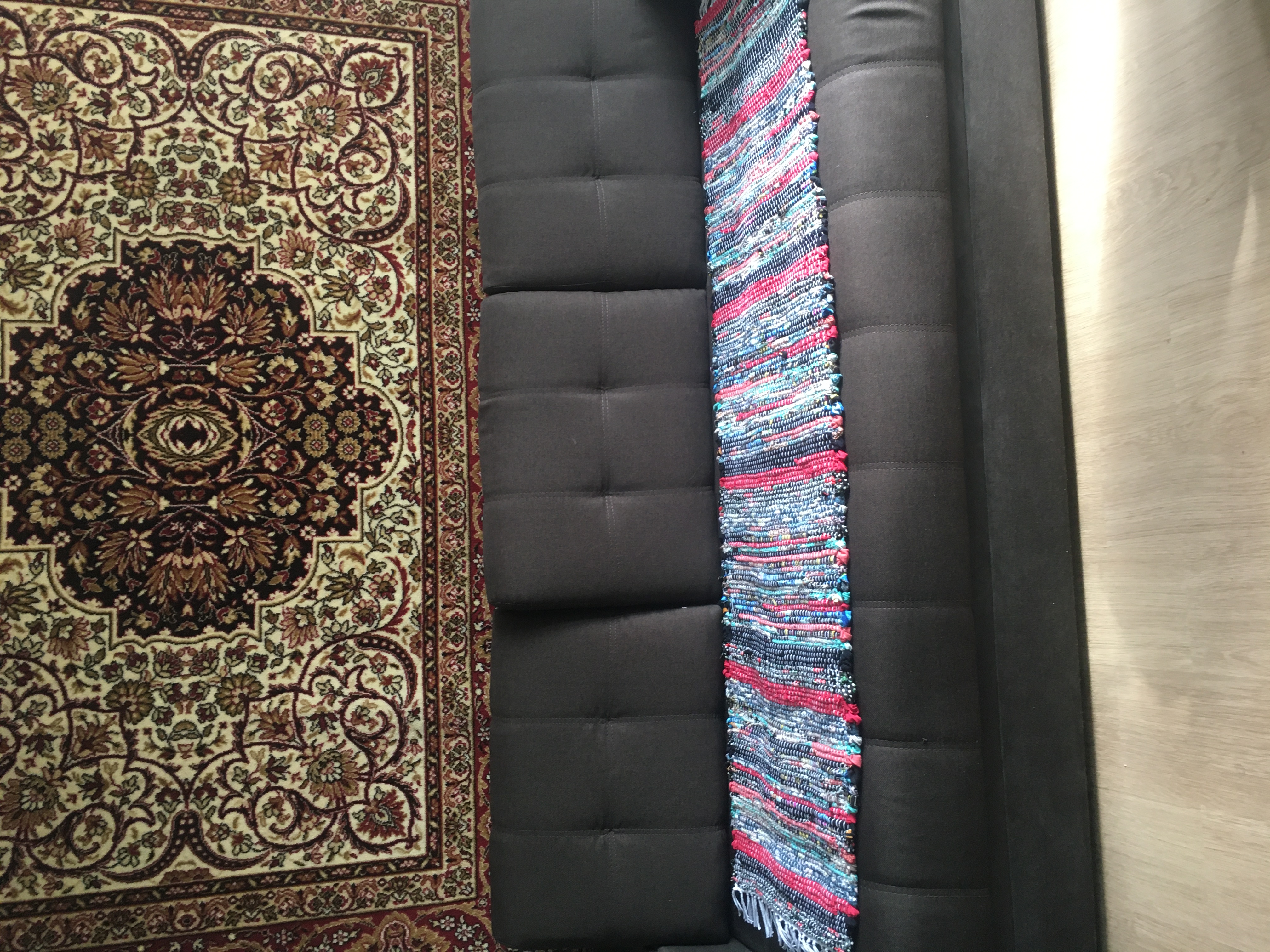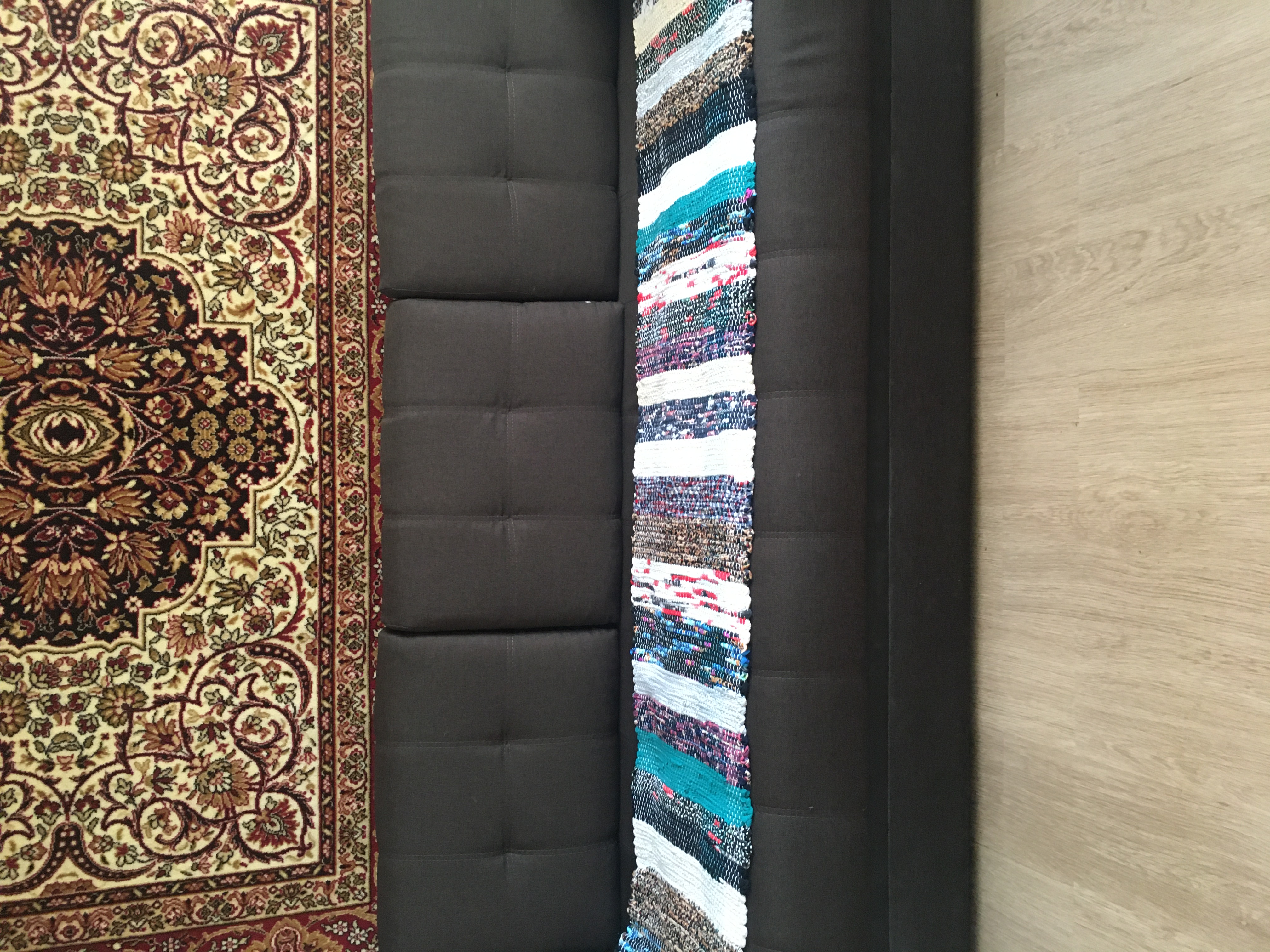 Все половички сотканы из б/у трикотажа. Длиной от 1.7 м до 2.30 м, шириной 0.5 м. Очень удачно смотрятся и используются на дачах на полу и на лавочках.