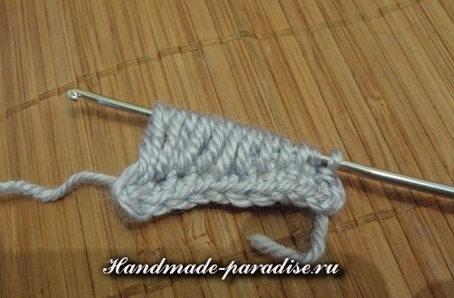 Приступаем к работе. Вяжем цепочку из 10-ти воздушных петель плюс одна петля для подъема. Первый ряд вяжем столбиками без накида.