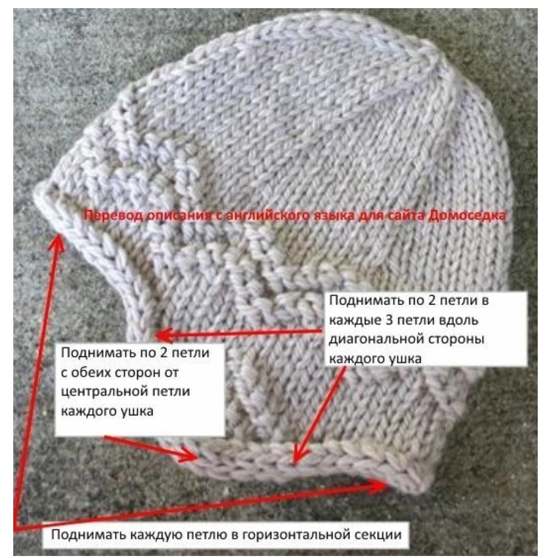 Круглая шапочка от Mary Ann Stephens отличается тем, что у неё есть ушки, прикрывающие уши от мороза и ветра. Такая особенность объяснима для северных стран Скандинавского полуострова – там холодно. По этой же причине вяжется шапочка из толстой шерстяной пряжи.