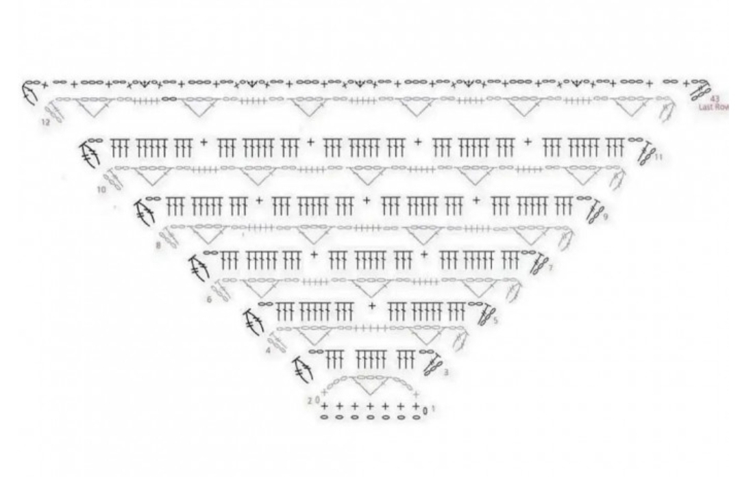 Узор подойдёт всем тем, кто любит длинные концы в бактусах и короткую середину.