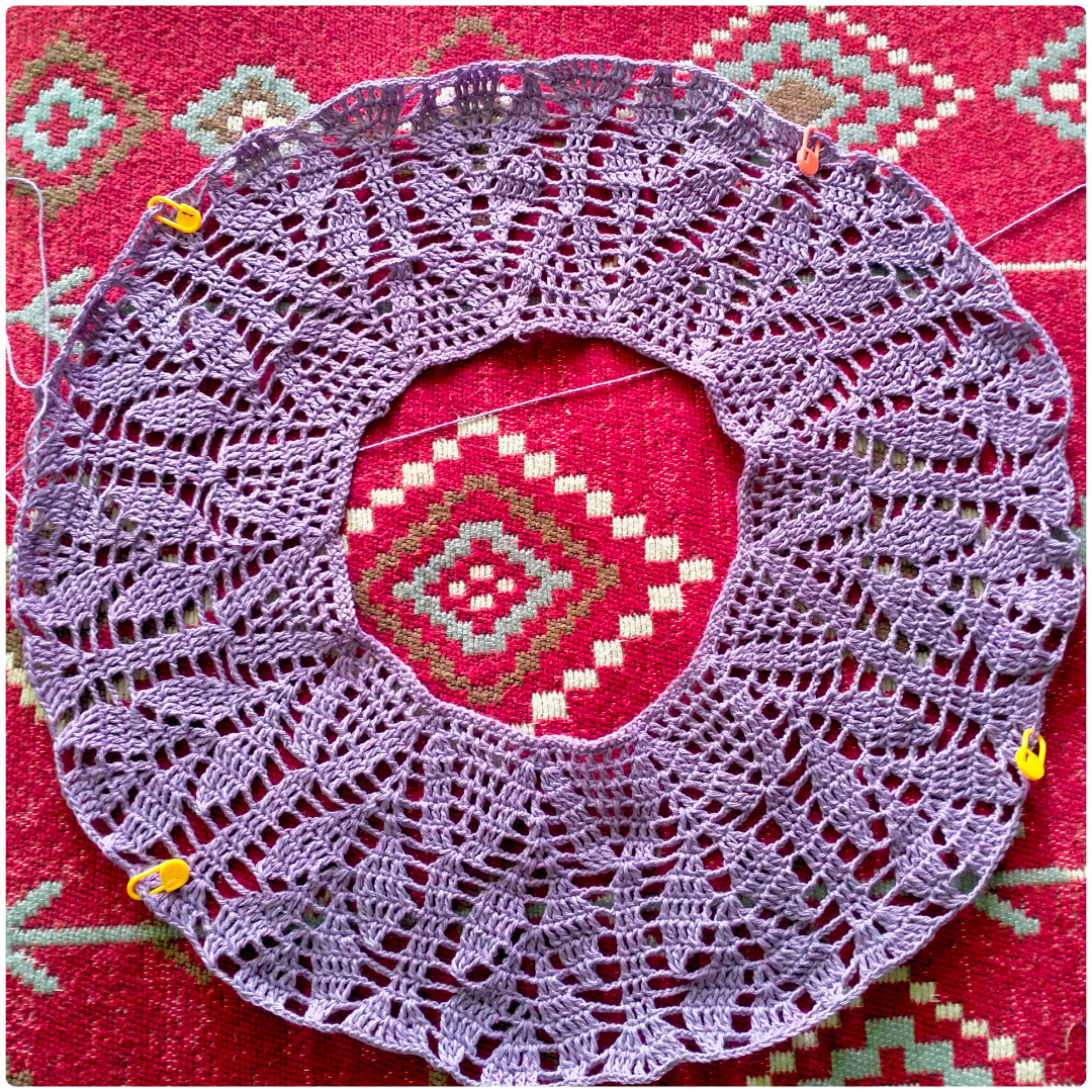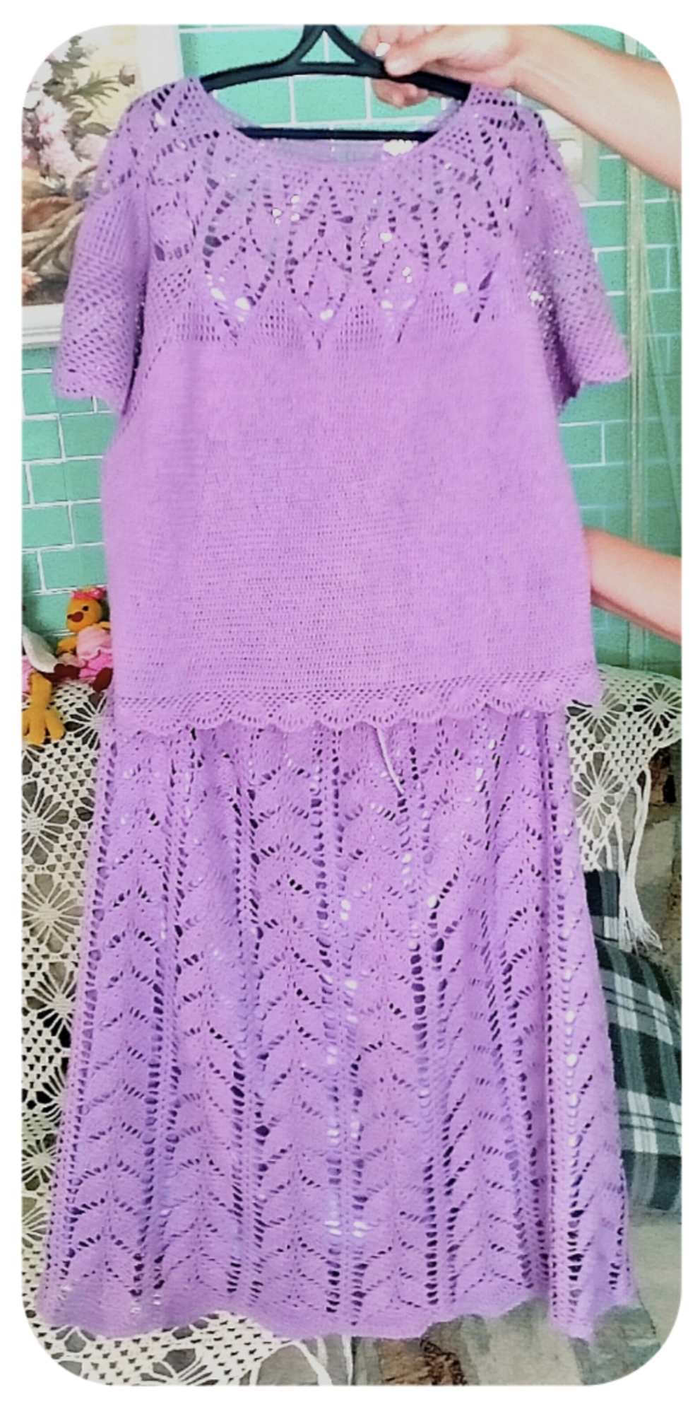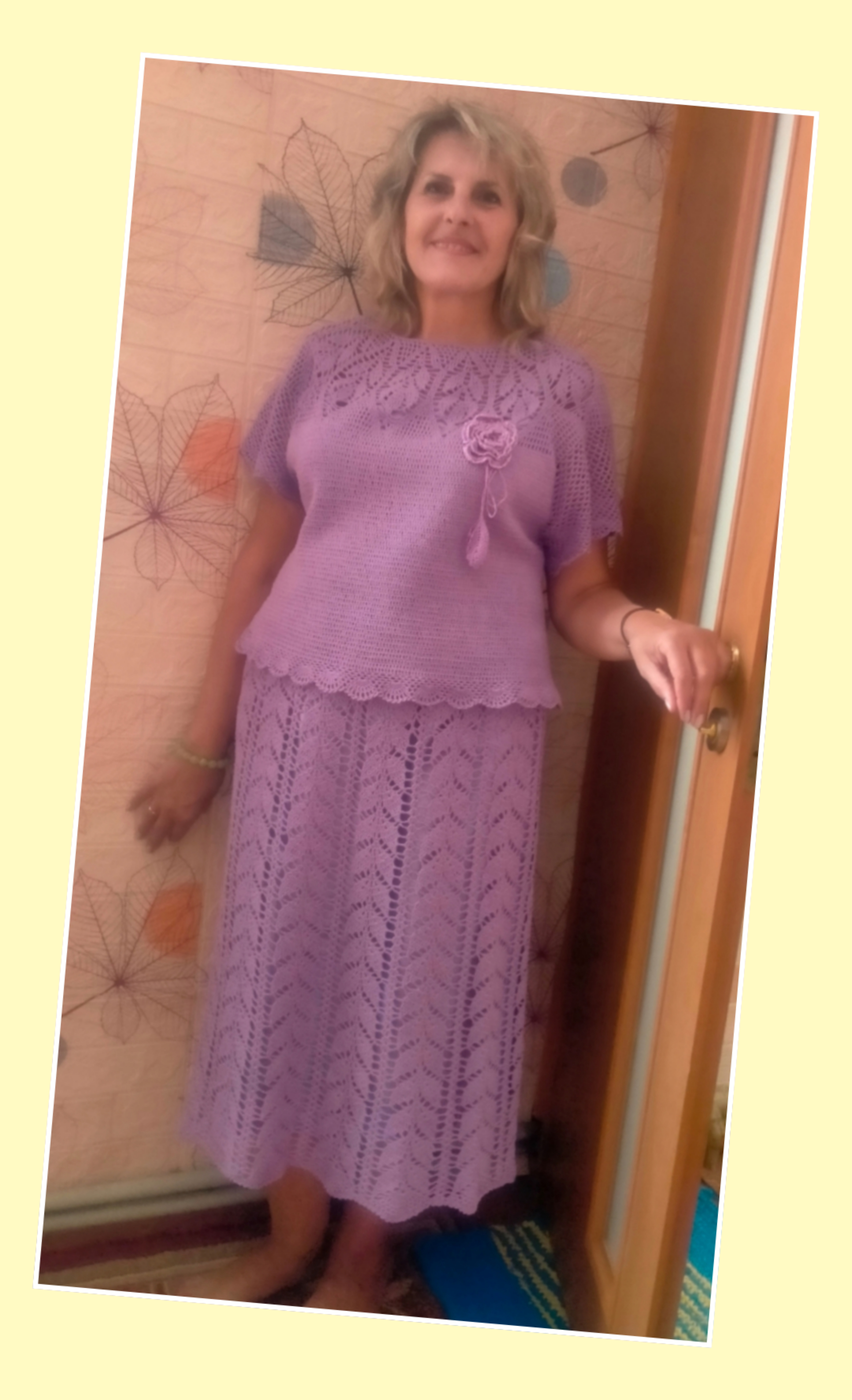 Здравствуйте. Представляю на конкурс" Осенние фантазии -2025" ажурный костюм "Сиреневый листопад".
