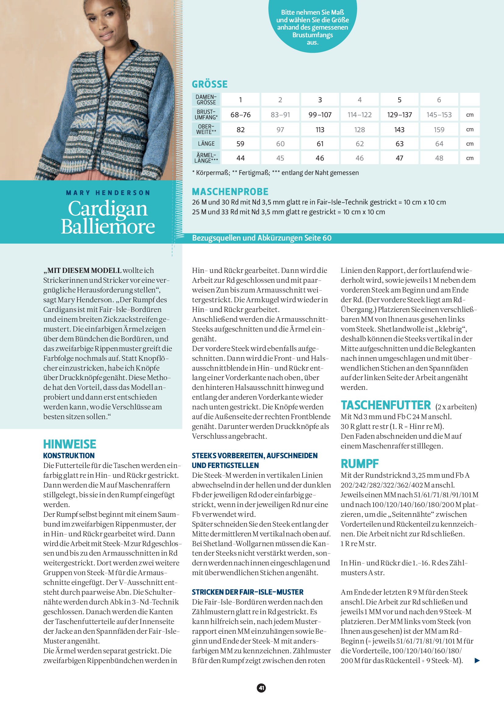 Популярный журнал посвящен вязанию спицами. Каждый выпуск содержит новые оригинальные проекты трикотажной одежды и вязаных аксессуаров от известных дизайнеров. В выпуске представлены современные проекты в классическом стиле, сочетающие в себе комфорт, модные тенденции и очарование нестареющей классики.
