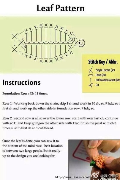 Вяжем маленькие розочки. Схема