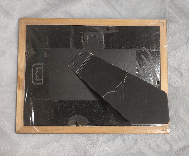А это задняя сторона самой рамочки уже с вышивкой. Закрепляю скотчем, так как крепления не очень надёжные.Рамочку можно поставить на стол, а можно и повесить на стену.