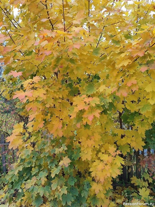 А этот клён растёт у нас не далеко от дома у дороги, где мы с внучкой идём из школы.