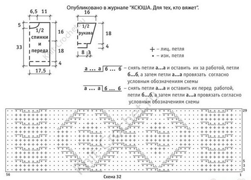 Плотность вязания: 24 п. х 32 р. = 10 х 10 см.