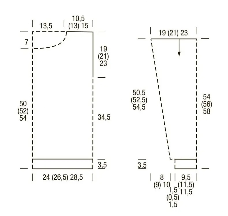 Перед и спинку до пройм вязать единым полотном круговыми рядами.