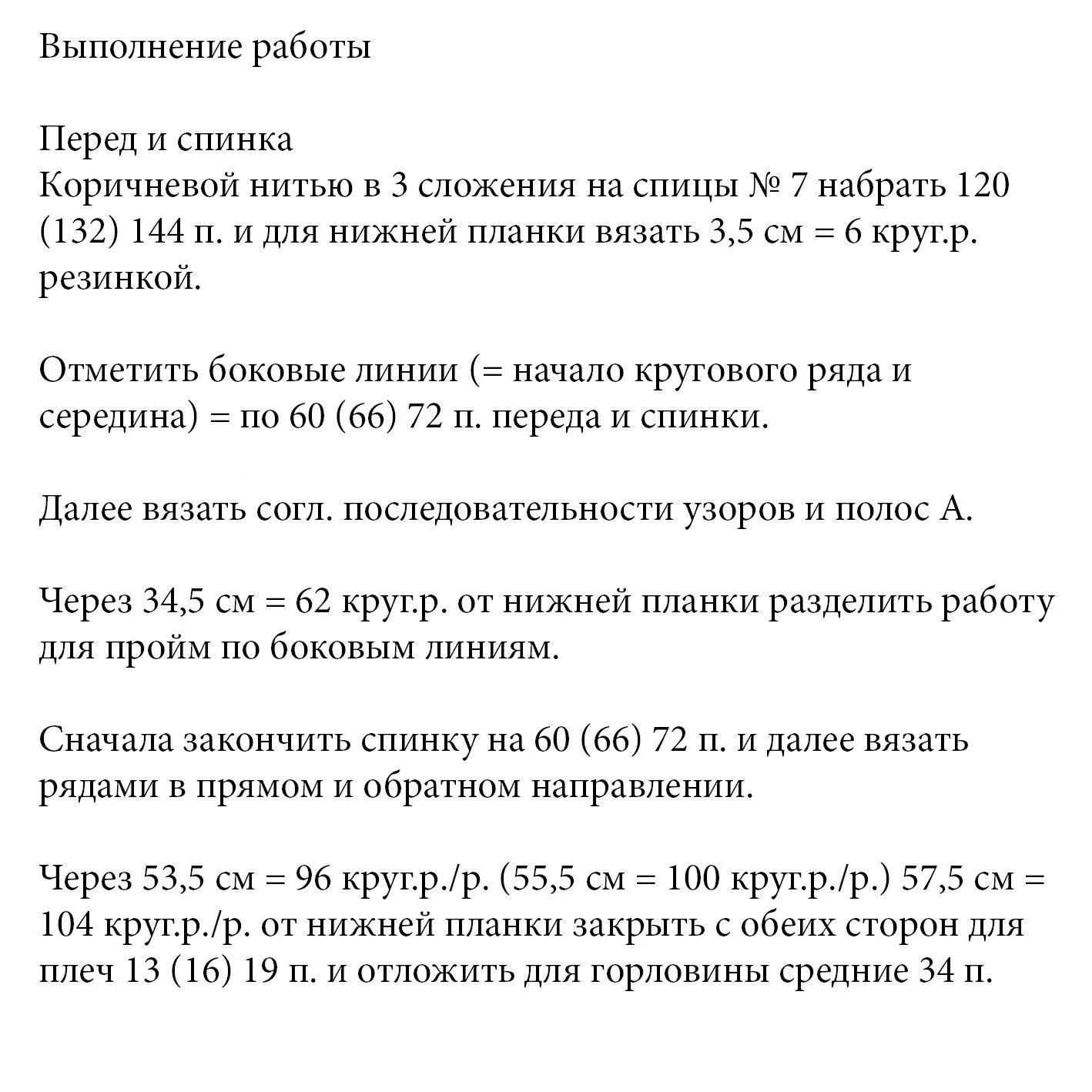 30 (32) 34 круг.р. лицевой гладью и 2 круг.р. ажурным узором коричневой нитью,