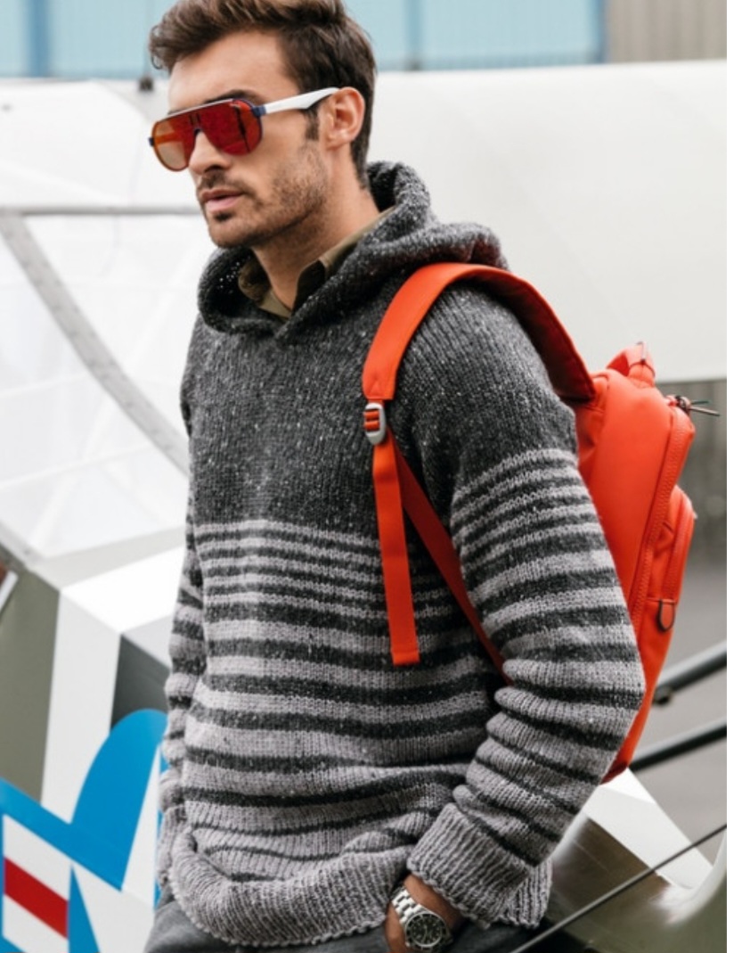 Пряжа (100% овечьей шерсти; 100 м/50 г) — 300 (350-400-450) г меланжевой антрацитовой и 150 (200-250-300) г меланжевой светло-серой; спицы №5 и 5,5; круговые спицы №5,5 длиной 40 см.
