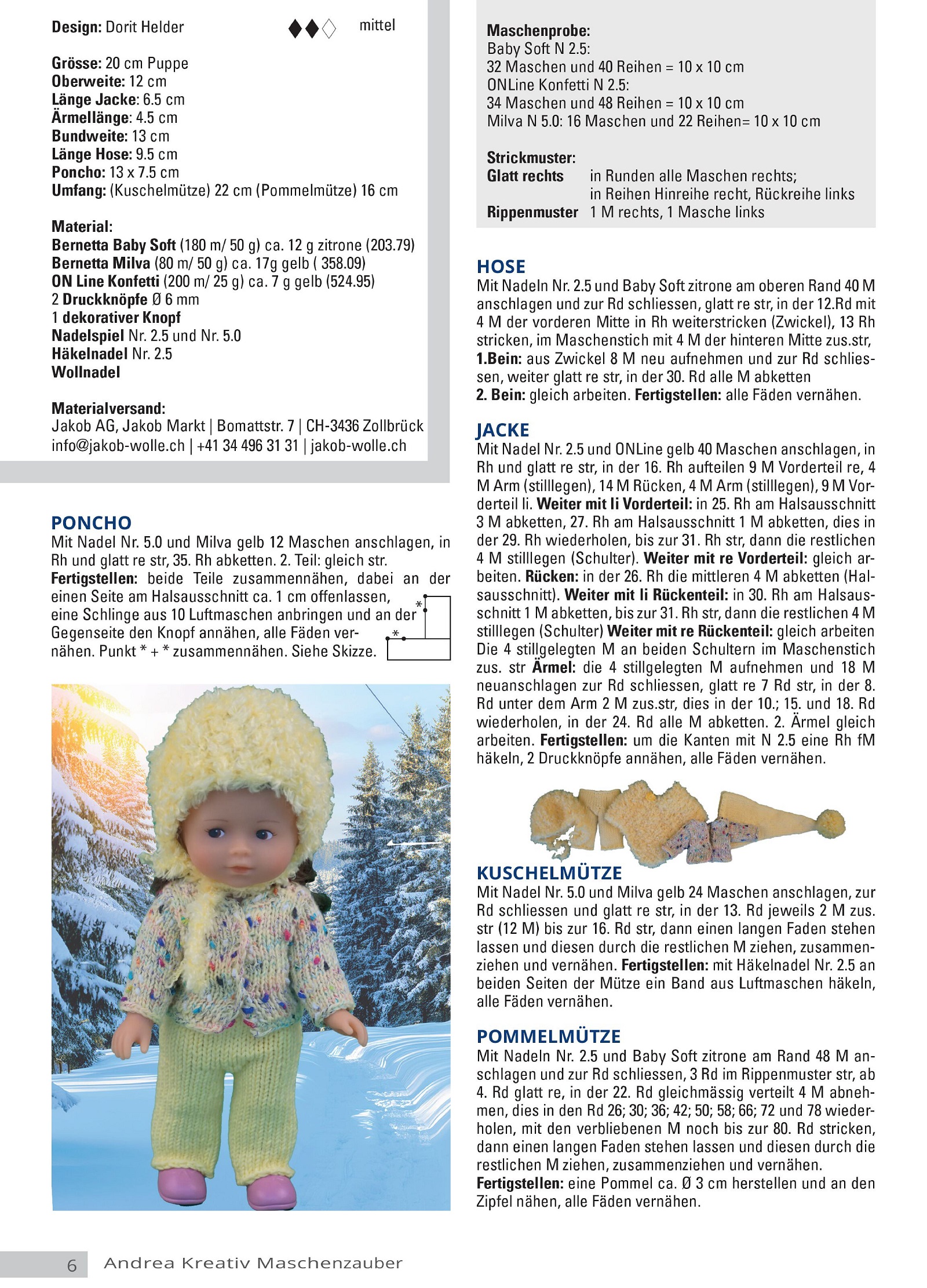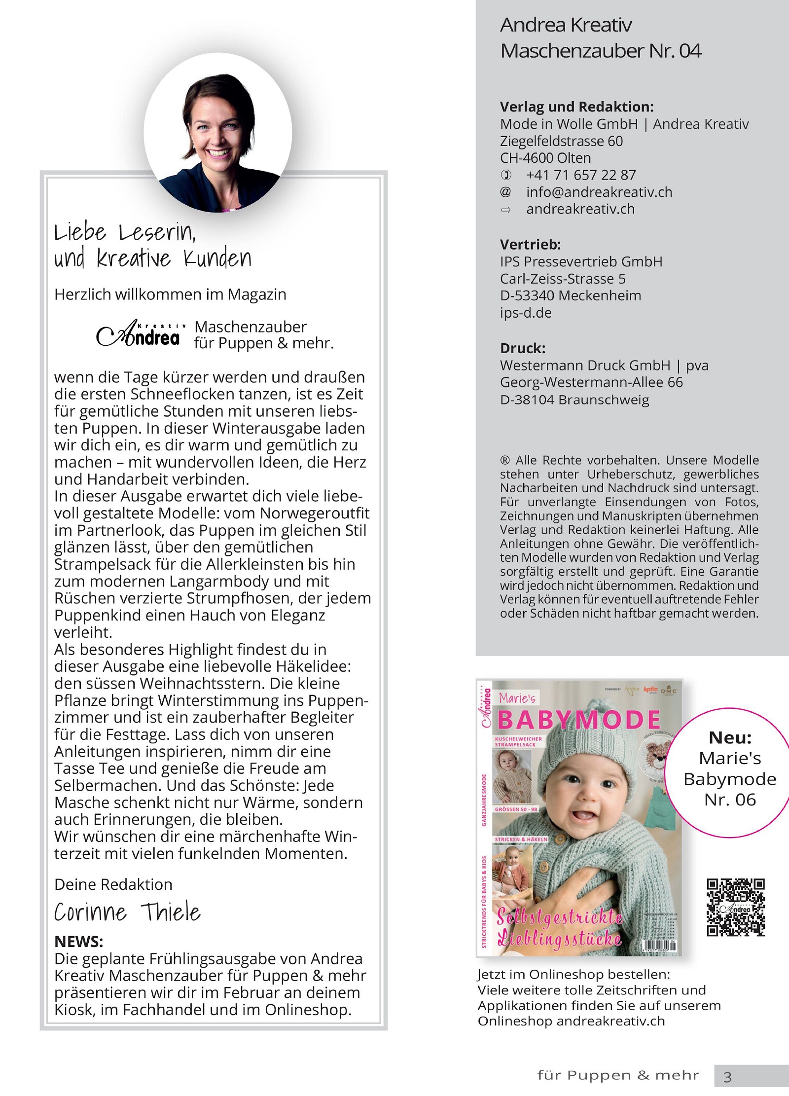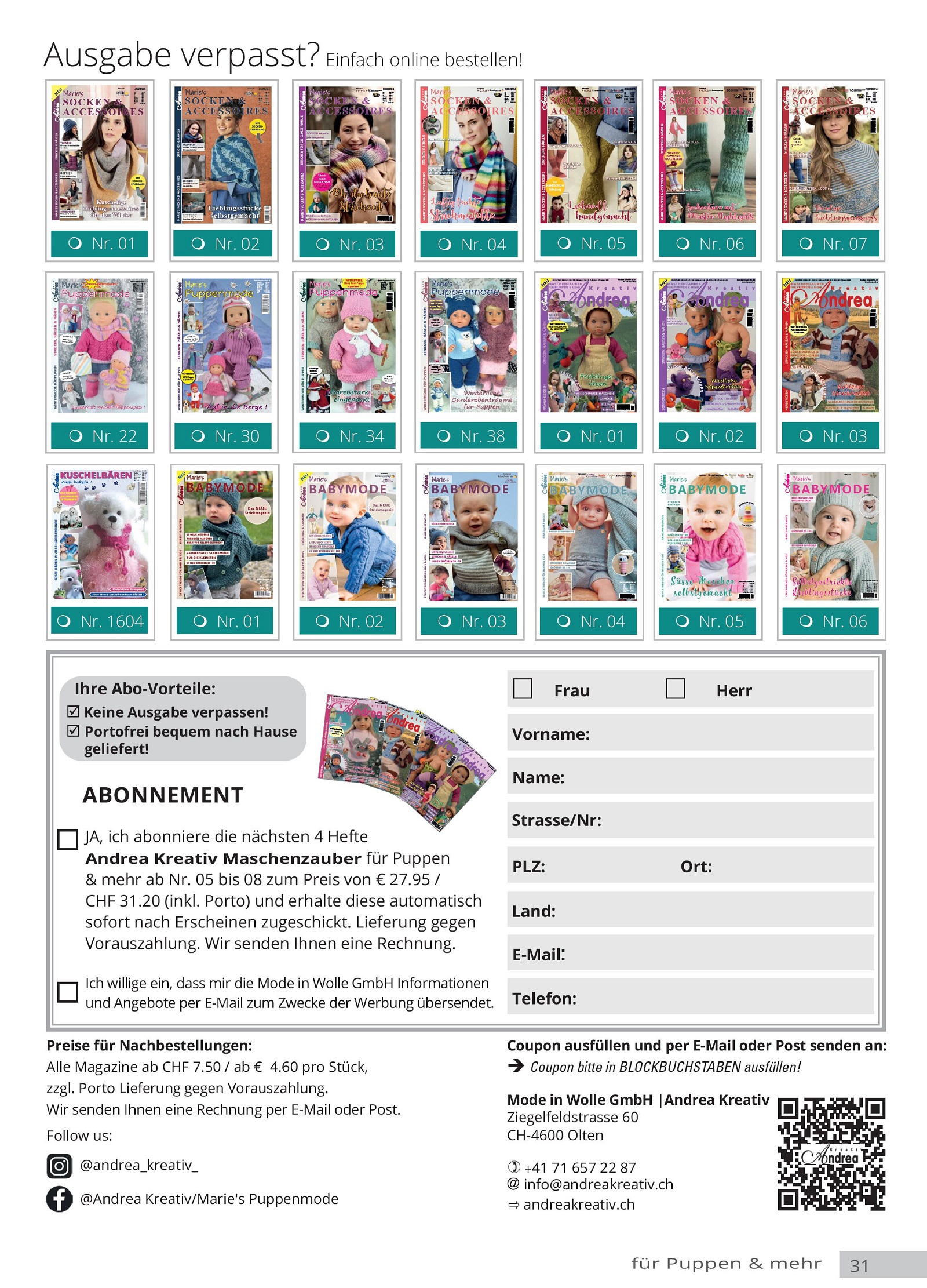 Популярный немецкий журнал по рукоделию "Andrea Kreativ" представляет новый выпуск журнала "Marie's Puppenmode". Здесь любители вязания найдут новую коллекцию вязаных проектов для любимых игрушек.