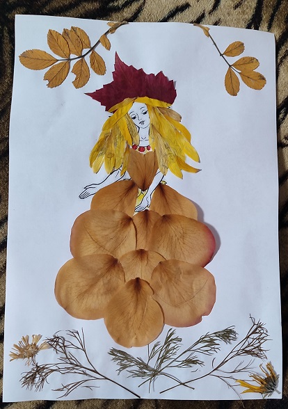 Ещё захотелось из засушенных листиков сделать девочку-Осень. Гербарий собираю не один год, так что материала для работы хватает.