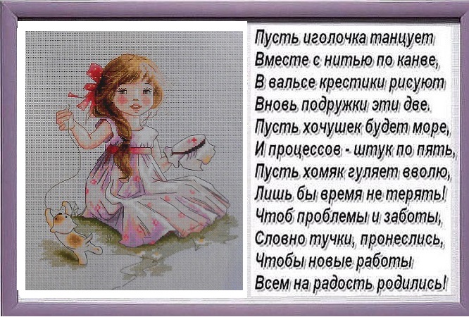 Я сегодня хочу всех, кто любит вышивку, поздравить от всей души с нашим праздником и пожелать ровных крестиков, шустрой иголочки и новых вышитых шедевров!