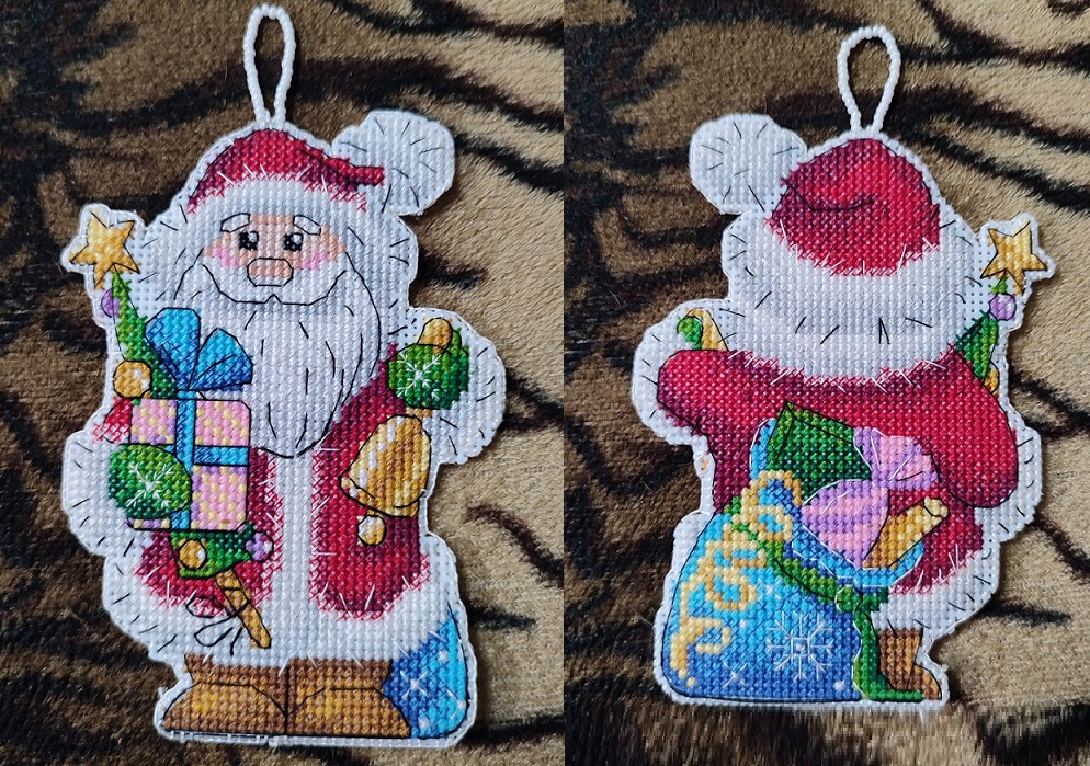 Снегурочка у меня была вышита ещё года два назад, а вот дедушки Мороза я ей никак не могла подобрать, но в этом году я нашла то, что хотела. И вот встречайте деда Мороза.