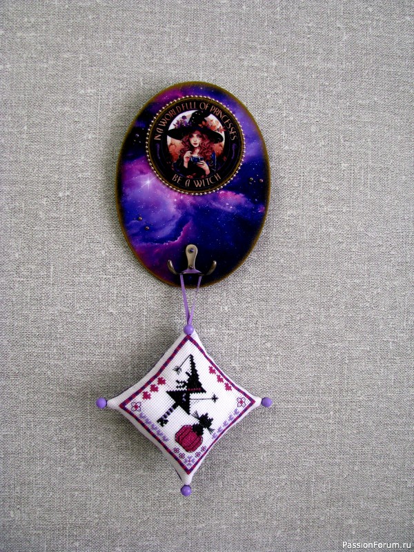 Иголки в жизни ведьмы не переводятся. Вешалка пригодится не только для игольницы, не всё же время на метле летать, периодически она «отдыхает» на вешалке.