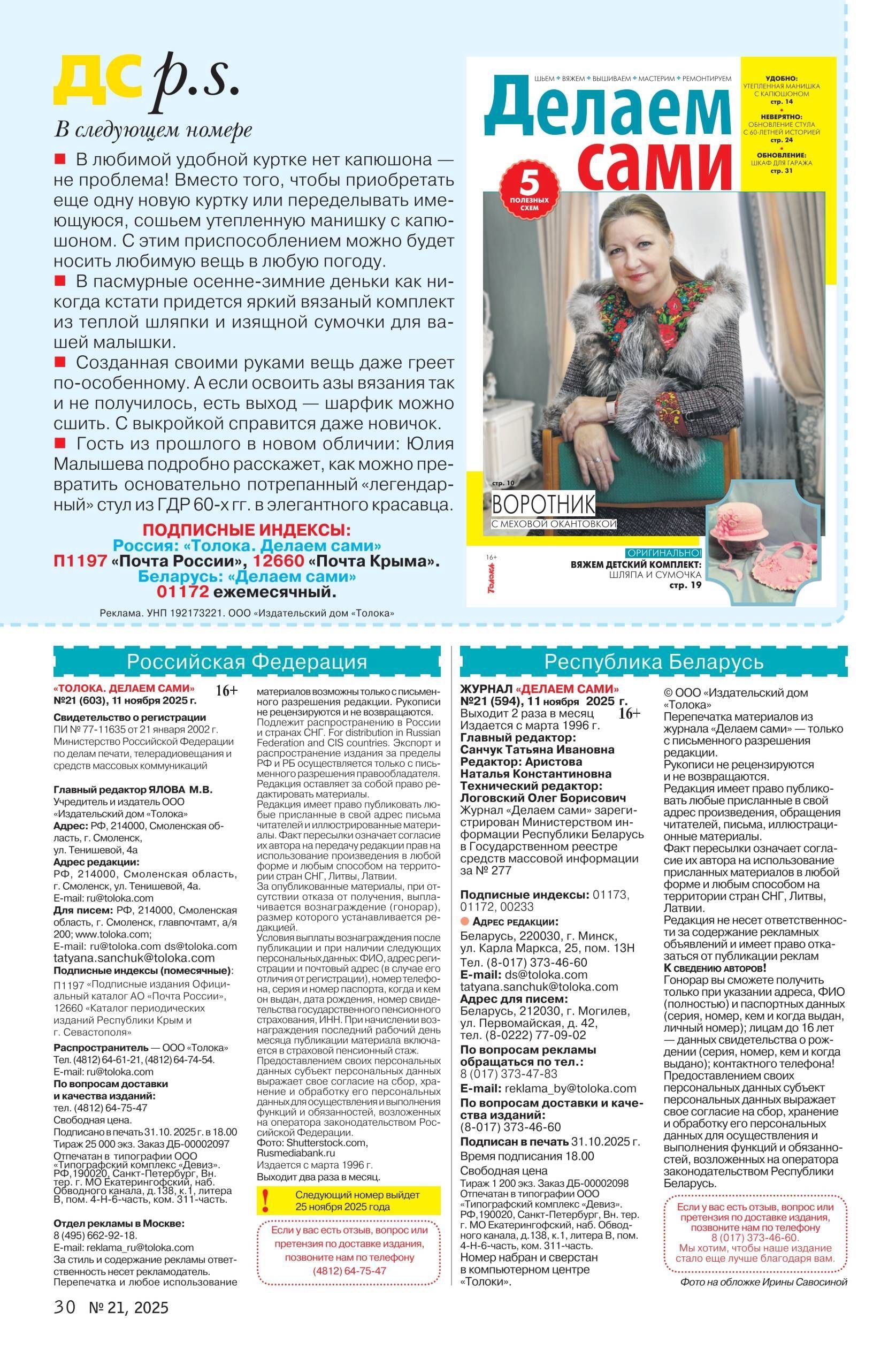 Коллекция проектов для рукодельниц в журнале «Делаем сами №21 2025»