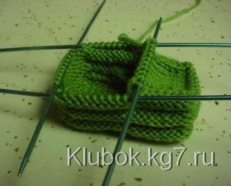 РАСПРЕДЕЛЯЕМ ПЕТЛИ НА 4 СПИЦЫ, ВЯЗАНИЕ СОЕДИНЯЕМ В КРУГ.