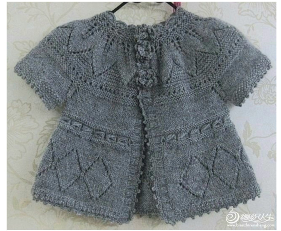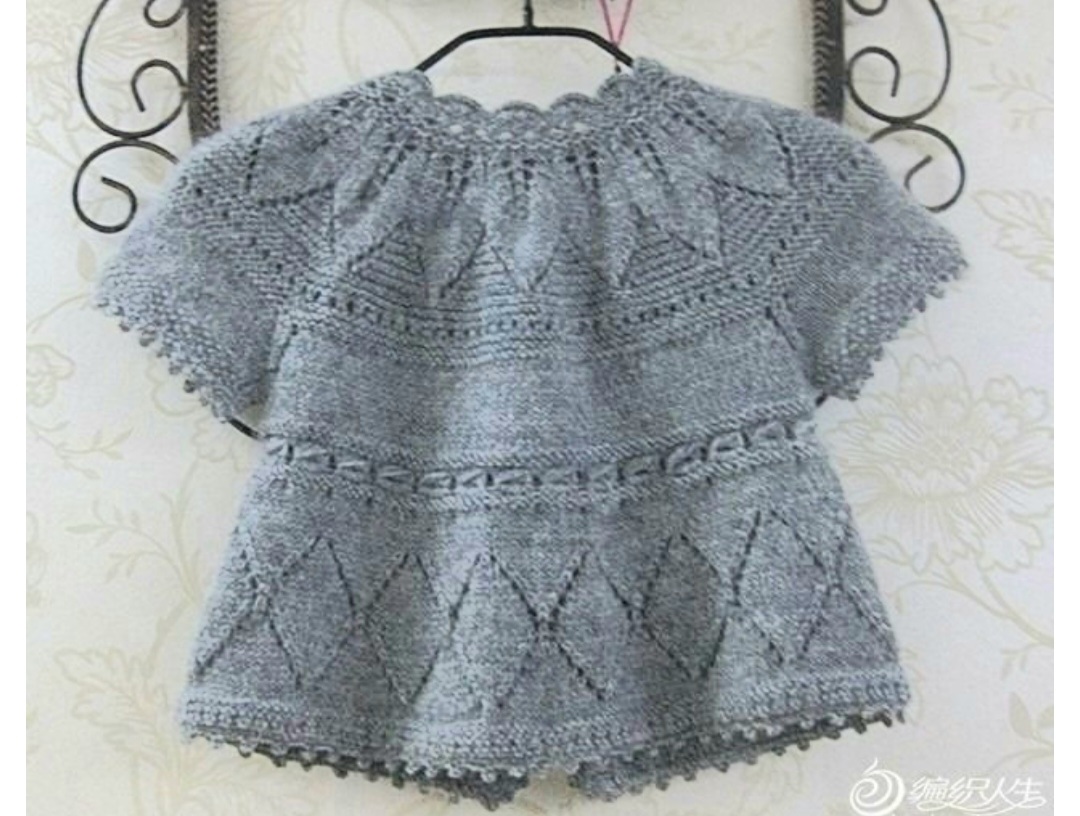 Ну а дальше элементарно, рукава я не довязывала, просто обвязала крючком и все, спинку и полочки вязала вместе, узор соображала так: 5 лиц. пет., накид, две петли вместе и т. д... изн. р. изнаночными, след. ряд подгоняла чтобы дырочки смотрелись в шахматном порядке, потом все обвязала столбиками б/н в 3 ряда и возд. петлями... ну как то так...