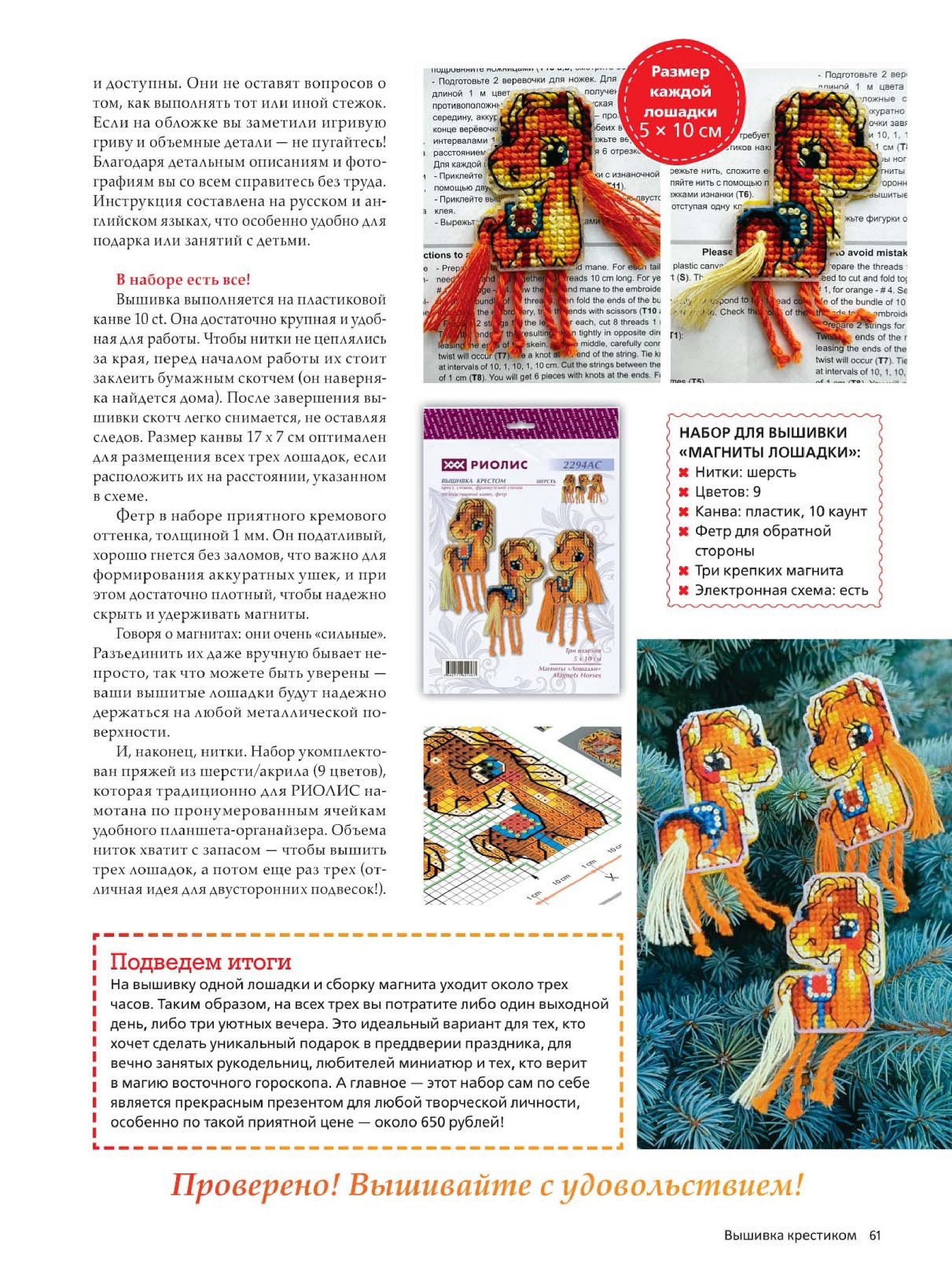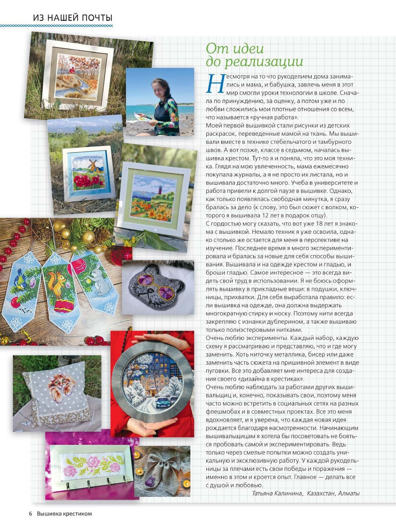 «Вышивка крестиком» - журнал для тех, кто увлекается вышиванием и рукоделием. В каждом номере вы найдёте схемы и лучшие идеи для вышивания от дизайнеров всего мира, советы экспертов, обзор рынка аксессуаров, статьи о рукоделии.