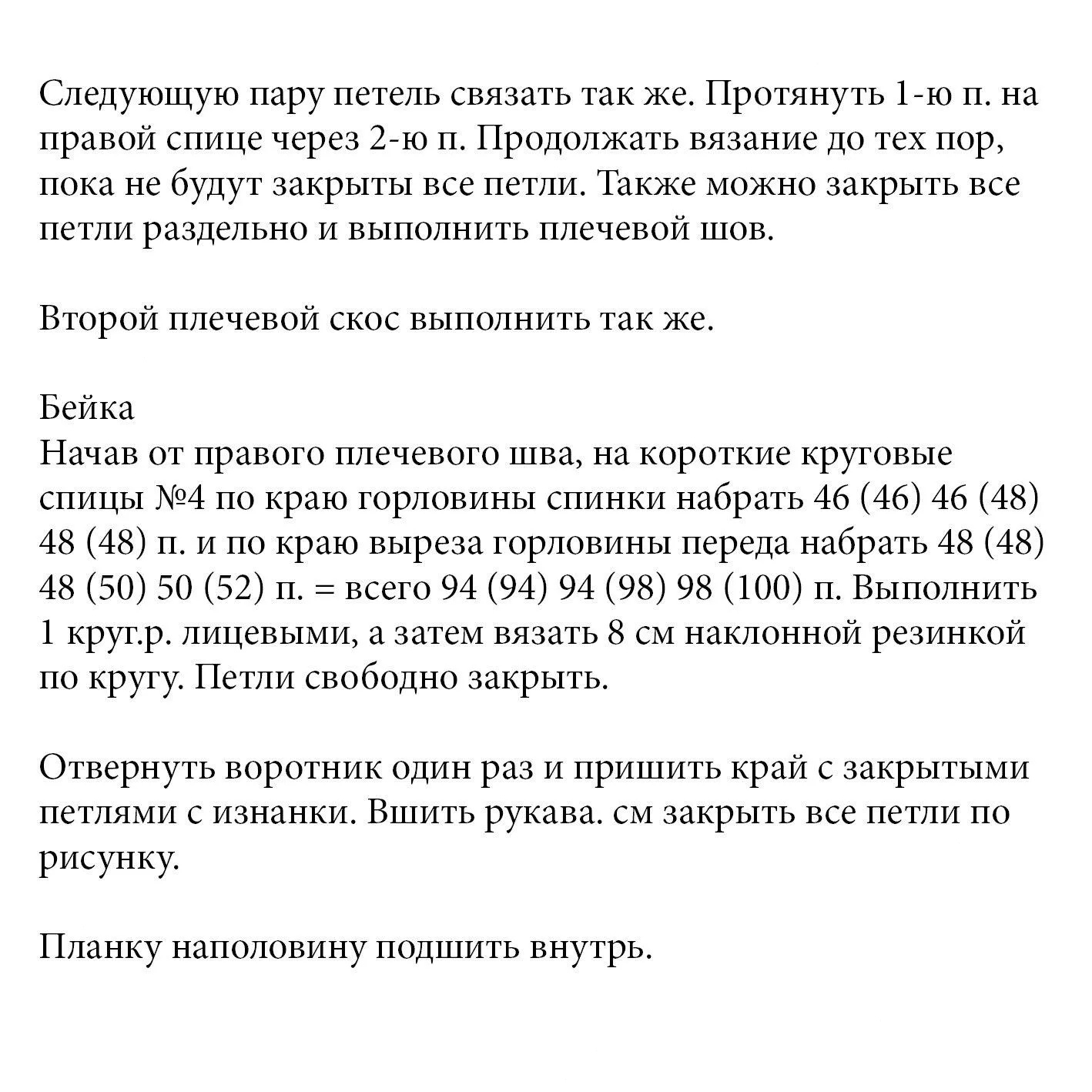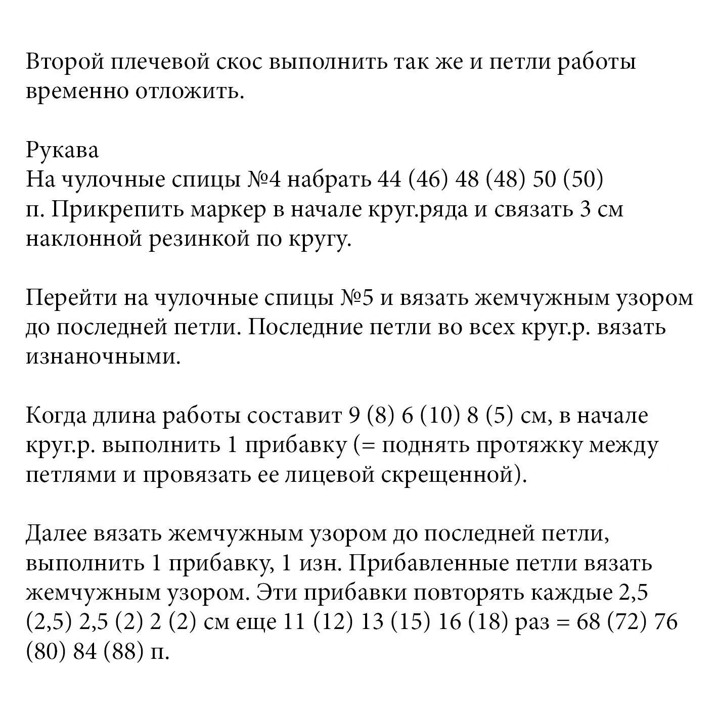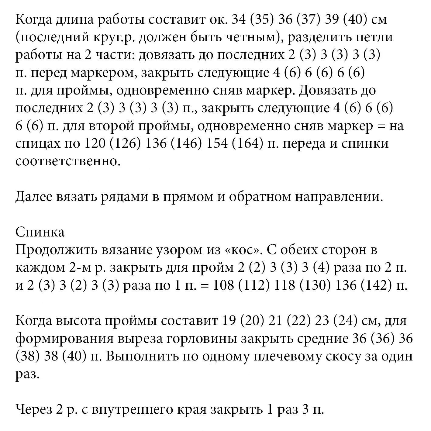 Джемпер до пройм вяжется по кругу. Верхняя часть вяжется рядами в прямом и обратном направлении. Рукава вяжутся по кругу.