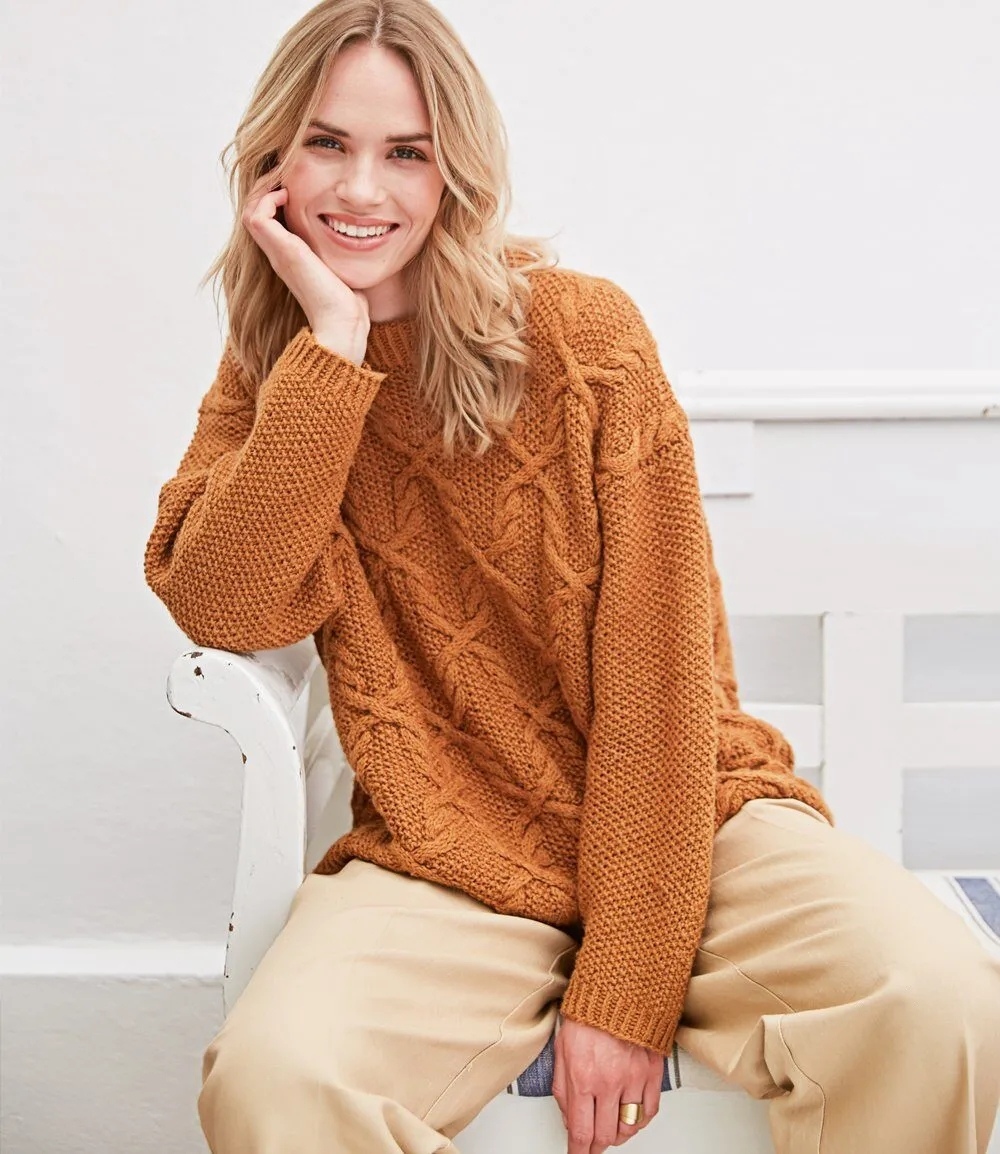 Перед и спинка этого джемпера украшены аранами на фоне жемчужного узора. Красивая классическая модель, которая никогда не выйдет из моды!