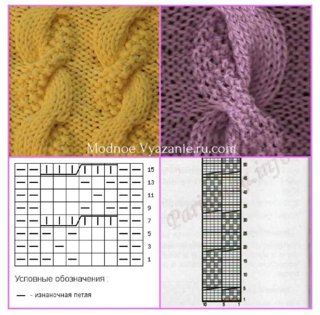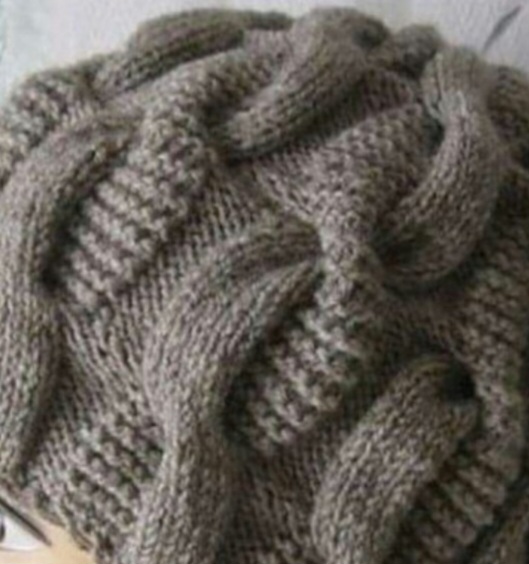 Вся необычность этого жгута заключается в том, что одна часть жгута вяжется лицевой гладью, а другая – платочной вязкой. В итоге получается очень интересный узор.