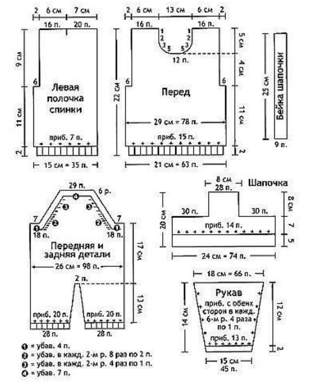 п., 2 п. и 1 п. На общей высоте 22 см закрыть по 16 п. для каждого плеча