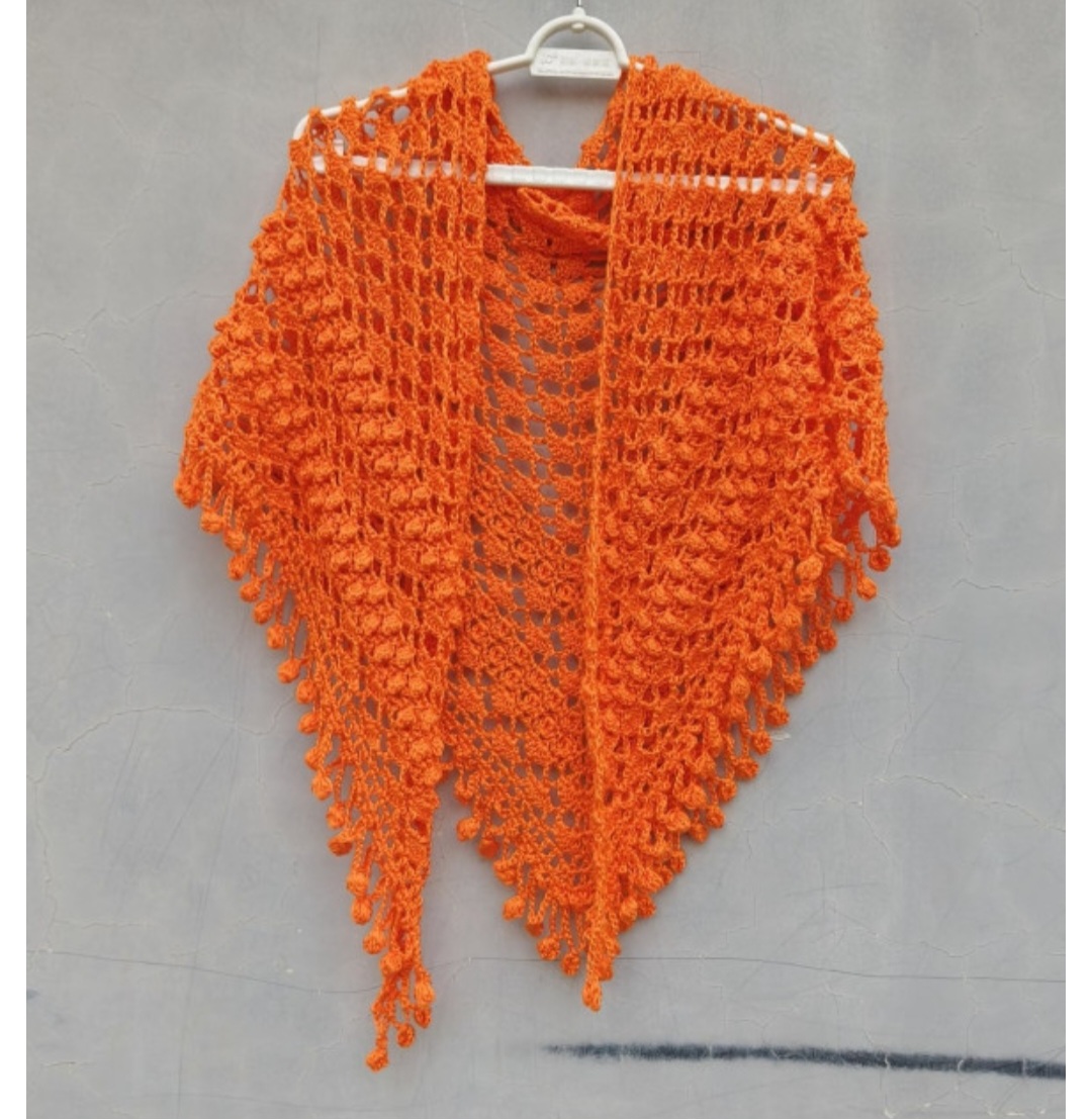 Яркая, воздушная, солнечная — такая шаль instantly добавляет образу энергию и настроение. Оранжевый в аксессуарах делает даже самый простой look живым и стильным, а ажурный крючок даёт ту самую летнюю лёгкость.