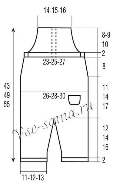 Выкройка для вязания полукомбинезона: