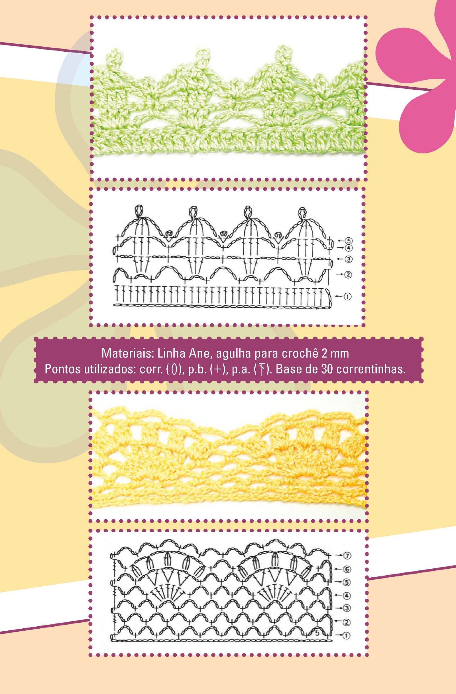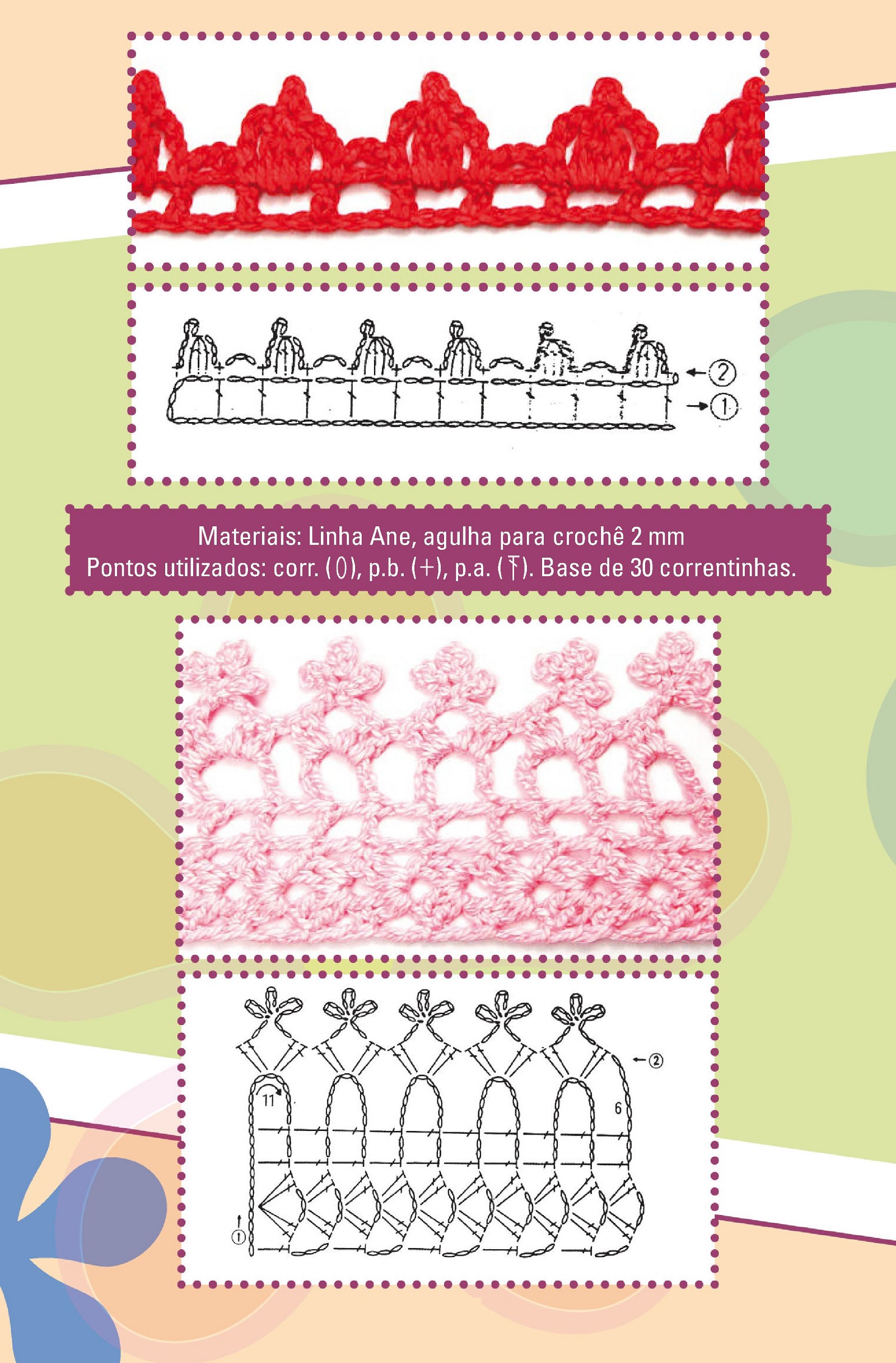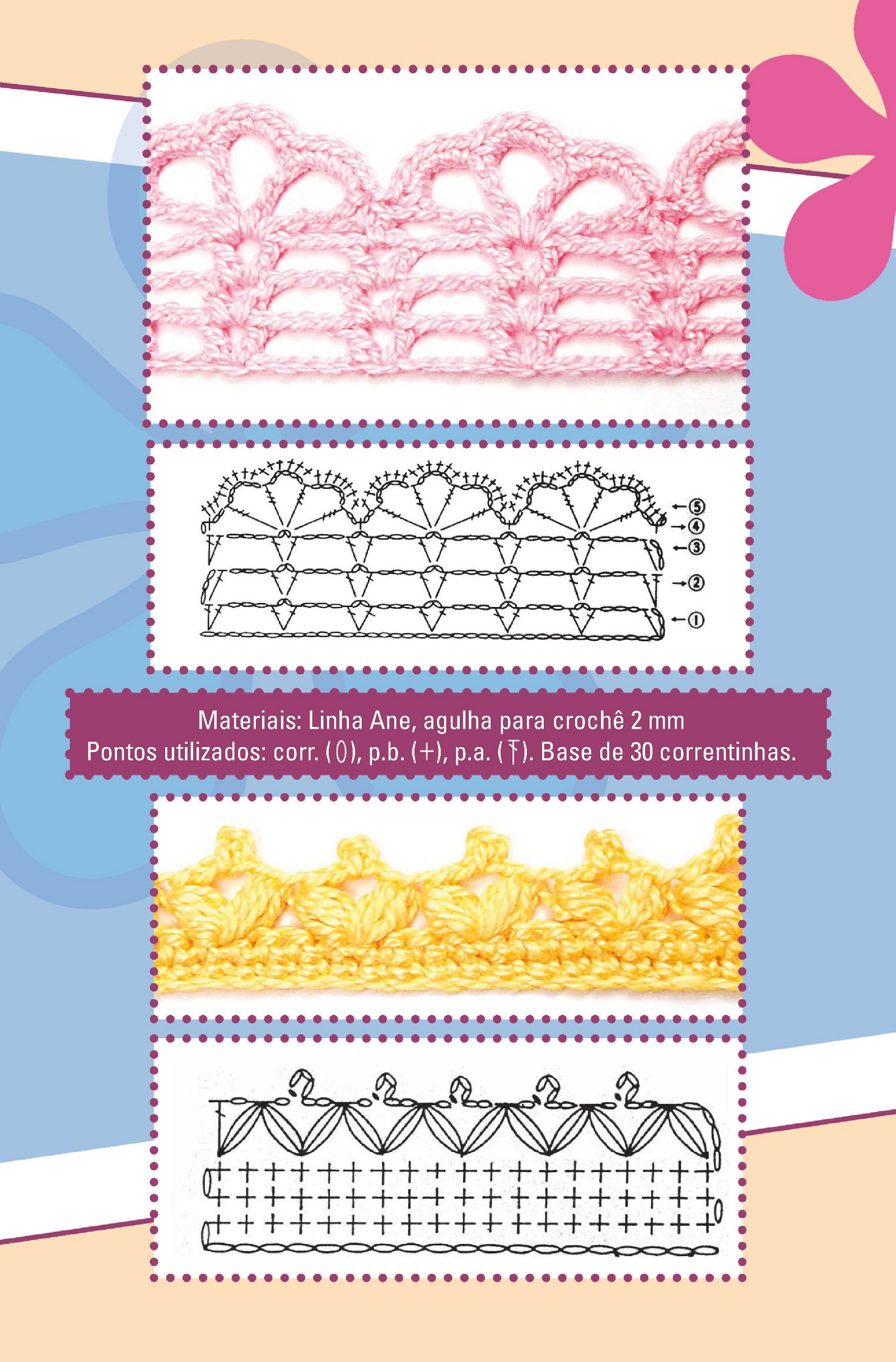 В журнале для рукодельниц Artesanato Simples представлены 50 очаровательных моделей бордюров для вязания крючком и спицами. Бордюры можно использовать для украшения чего угодно. К каждой модели даны выкройки, схемы и инструкции.