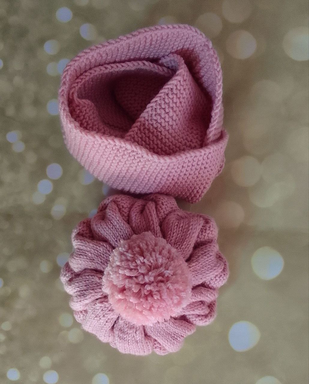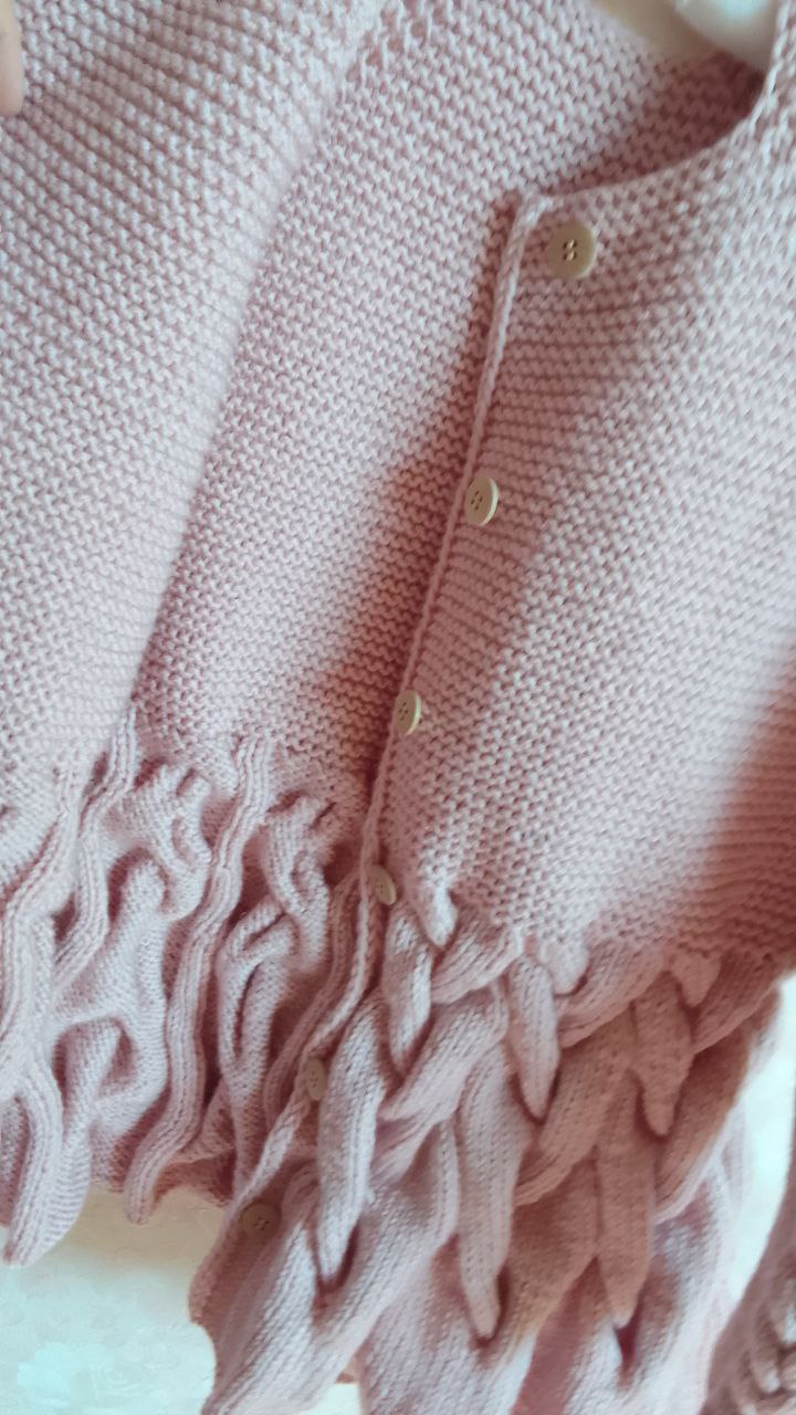 Вязала я весь комплект из пряжи Alize Lanagold в 1 нить. Цвет - кристально-розовый. Мастер-класс на кардиган вы можете найти на платформе Ютуб, он есть в открытом доступе.