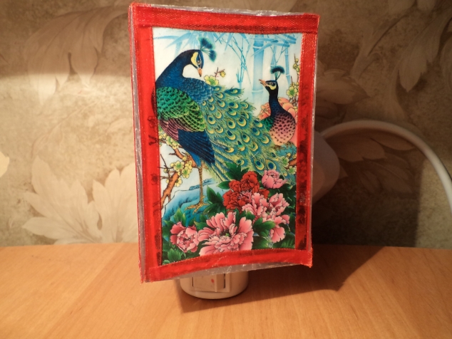 Да Наталья- картинки очень красивые для светильника-но согласна с Людмилой -ленточки как то все портят.Может вам надо было их на уголки приклеить.А то лента перекрывает картинку по краю а углы лампы высвечивают.Сама по себе идея хорошая!!!