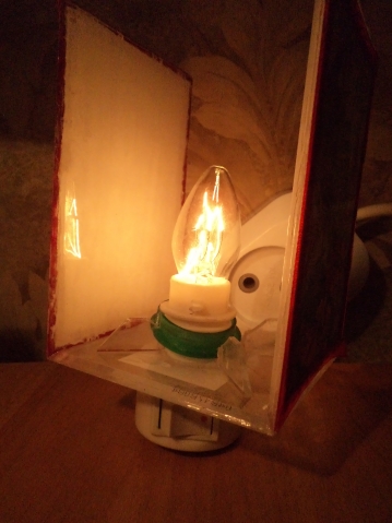 В обычном китайском светильнике разбился верх, и тут очень уж кстати подарили мне и сестре духи в пластиковой упаковке. И вот что из всего получилось. Стороны загрунтовала, а для декупажа использовала распечатку на простой офисной бумаге.